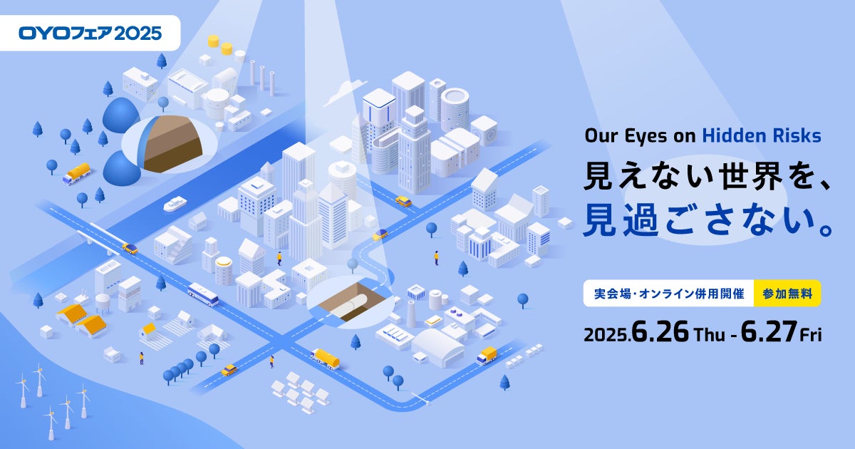 地盤・地質リスクの最前線を可視化する応用地質株式会社(本社:東京都千代田区、代表取締役社長:天野洋文)は、2025年6月26日(木)・27日(金)に『OYOフェア2025』を開催いたします。近年、地盤事故や大規模自然災害の報道が相次ぎ、「地質・地盤リスク」は社会的な関心を集めています。その背景には、地盤の“見えない”不確実性、インフラ老朽化、気候変動による災害の激甚化・複雑化といった課題があります。応用地質は創業以来、こうしたリスクに向き合い、時代ごとの最適なソリューションを提供してきました。『OYOフェア2025』では、これまでの取り組みを活かし、社会が直面する未知のリスクへの備えと挑戦を広く紹介します。本年は「見えない世界を、見過ごさない。~Our Eyes on Hidden Risks~」をテーマに掲げ、最新機器や技術の展示、専門家によるセミナー、防災教育に活用できる模型実験などを実施。セミナーはオンラインでも参加可能です。応用地質は、地球科学に基づく技術で人と自然の調和を図り、持続可能な社会の実現に向けて積極的に取り組んでまいります。