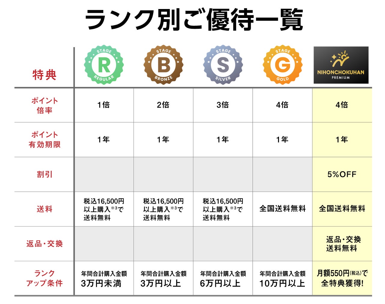 ― 送料無料:購入金額に関わらず、常に送料無料の特典を受けられます。