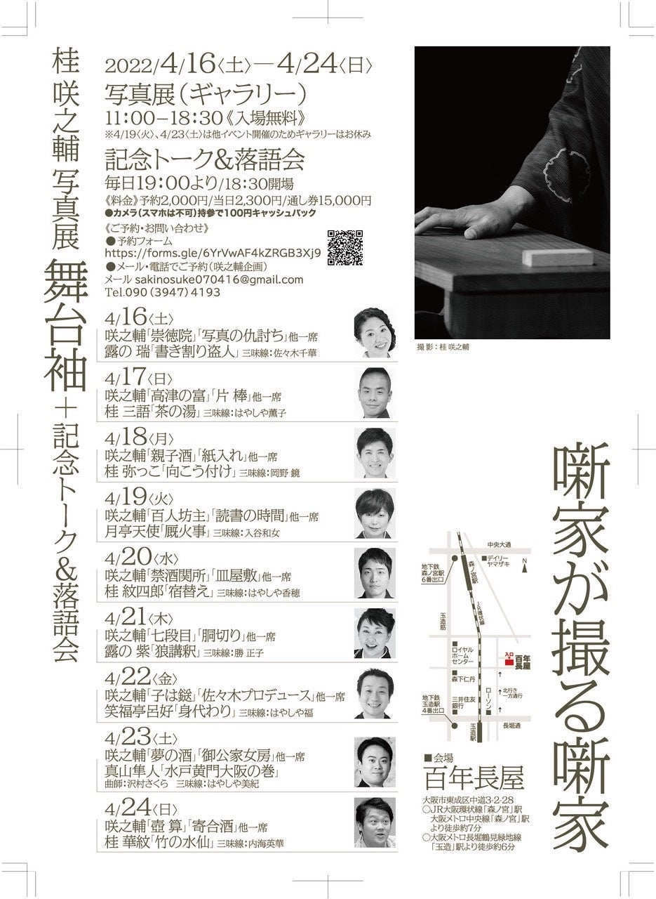 ◆上方落語家・桂咲之輔写真展 「舞台袖~噺家が撮る噺家」