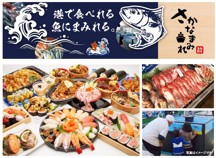 鮮魚専門のバイヤーが日本各地の漁港から直接仕入れた新鮮な魚がその日のうちに店頭に並び、まるで市場に行くような観光気分で、お買物やイートインスペースでのお食事を楽しめます。(※)
