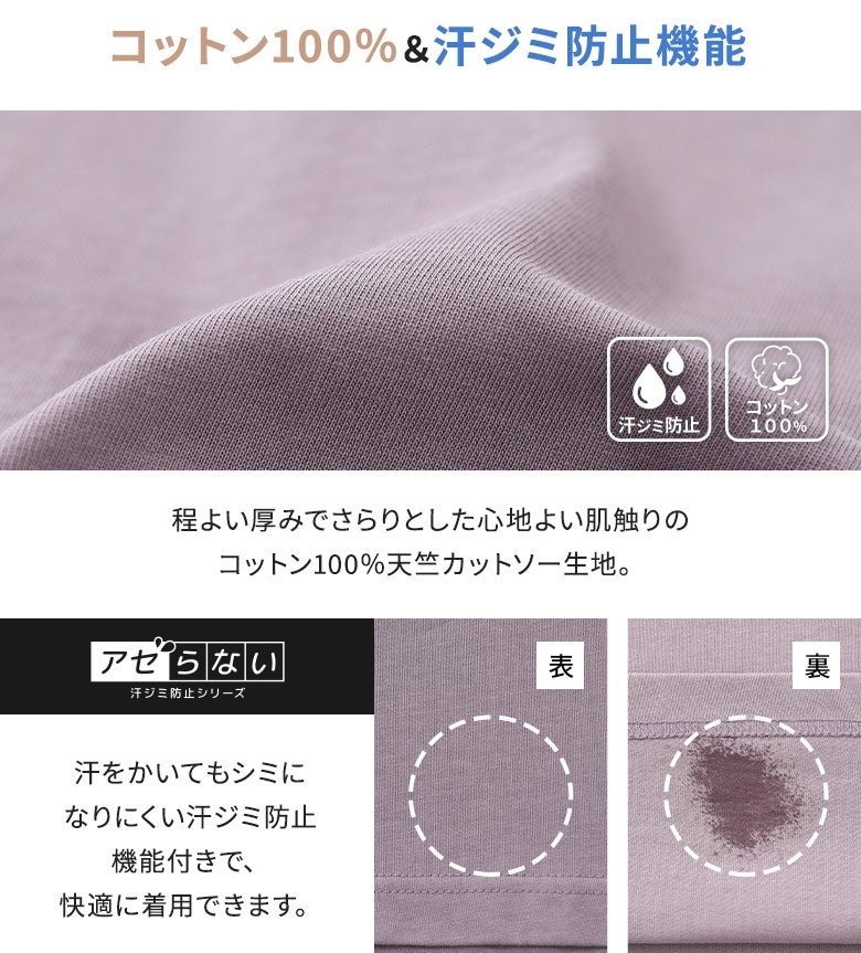 汗ジミ防止機能に加え、コットン100%と着心地にもこだわった「アセらない」長袖カットソーが新登場。どんなシーンでも自信を持って過ごせる一着です。