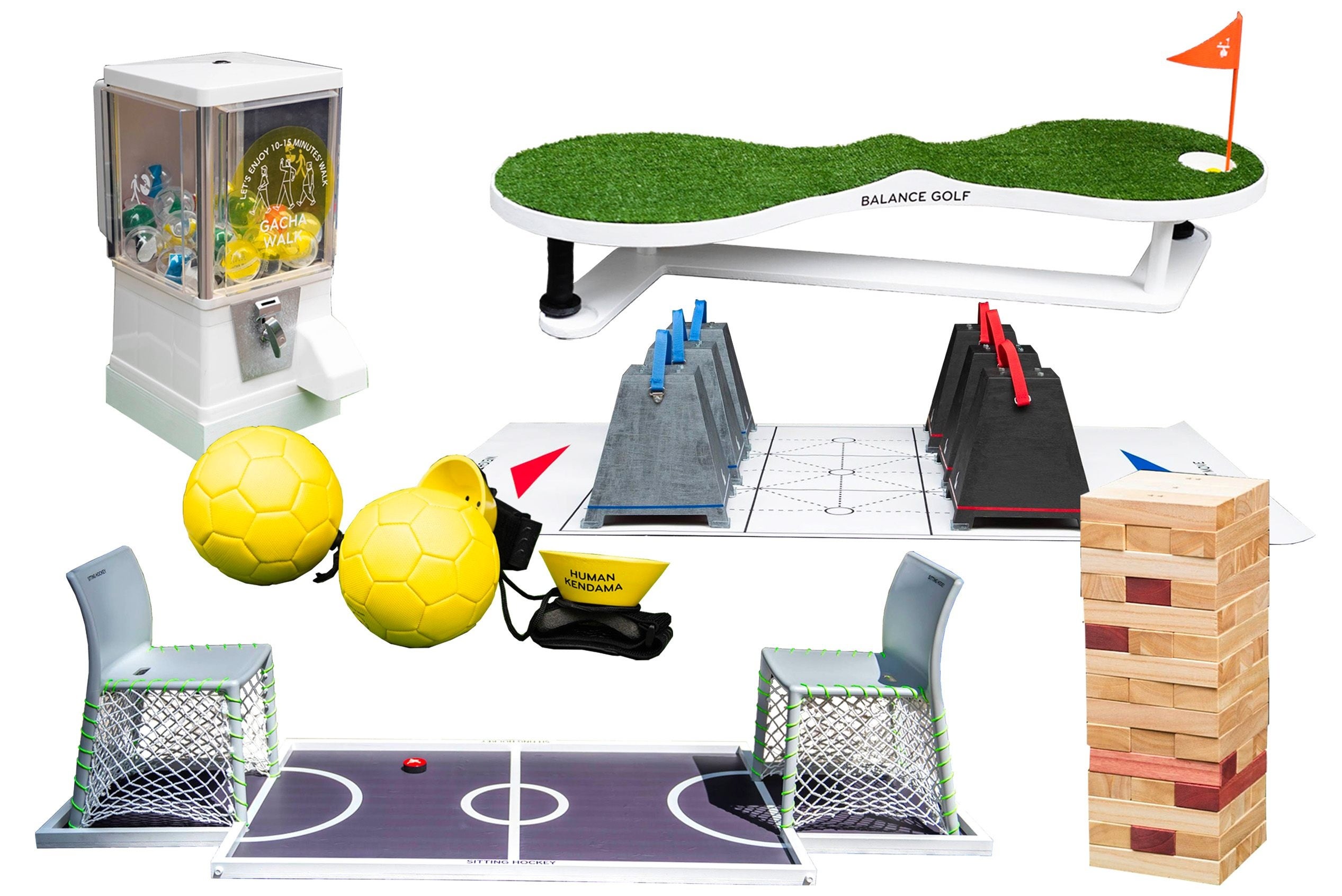 オーバル広場内に卓球台やスカットボールなど、手軽に参加できるアクティビティツールを設置。さらに、「都市スポーツ」研究として、様々な実証実験を行っているパナソニック株式会社デザイン本部と建築設計を基軸としながら公共空間の再生やプロダクトデザインなどを横断的に行うOpenAの共同開発による、ゲーム感覚で楽しめる新たなアクティビティツールも登場。椅子に座ってパックを蹴り合うホッケーゲームや、大きなコマを動かしながら行う巨大ボードゲームなど、斬新なツールで遊びながら体を動かすことができます。