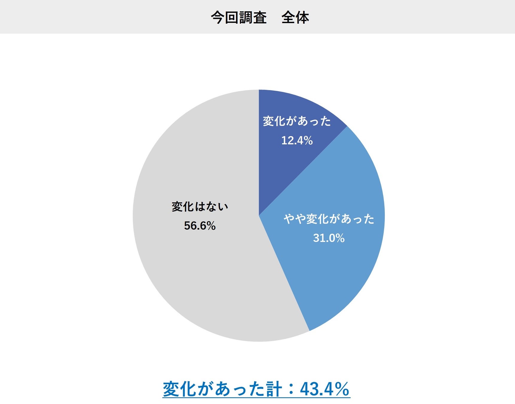 3.ハラスメント意識により、全体の43.4%が「職場でのコミュニケーションに変化あり」と回答。