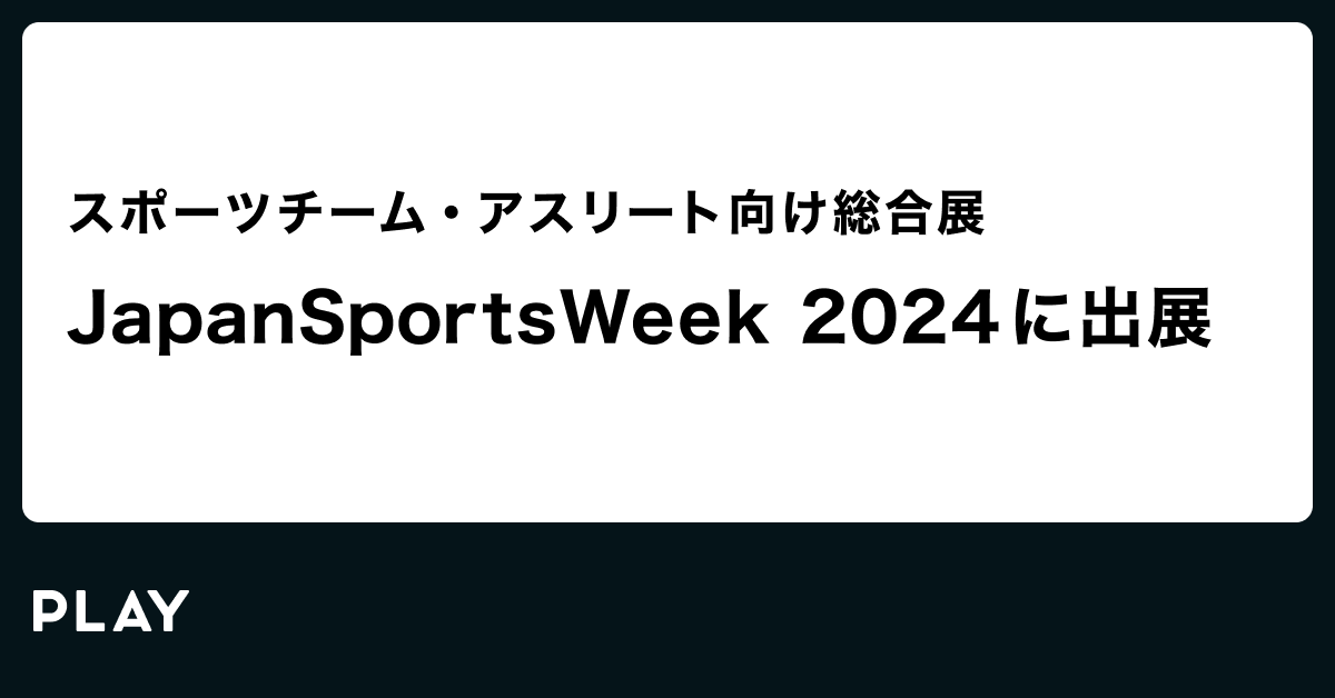 株式会社PLAY(東京都渋谷区、代表取締役社長 黒田和道、以下:PLAY)は、2024年7月3日(水)~5日(金)に東京ビッグサイトで開催されるスポーツチーム・アスリート向け総合展「Japan Sports Week」に出展します。ブースは、南展示棟(小間番号26-39)になります。