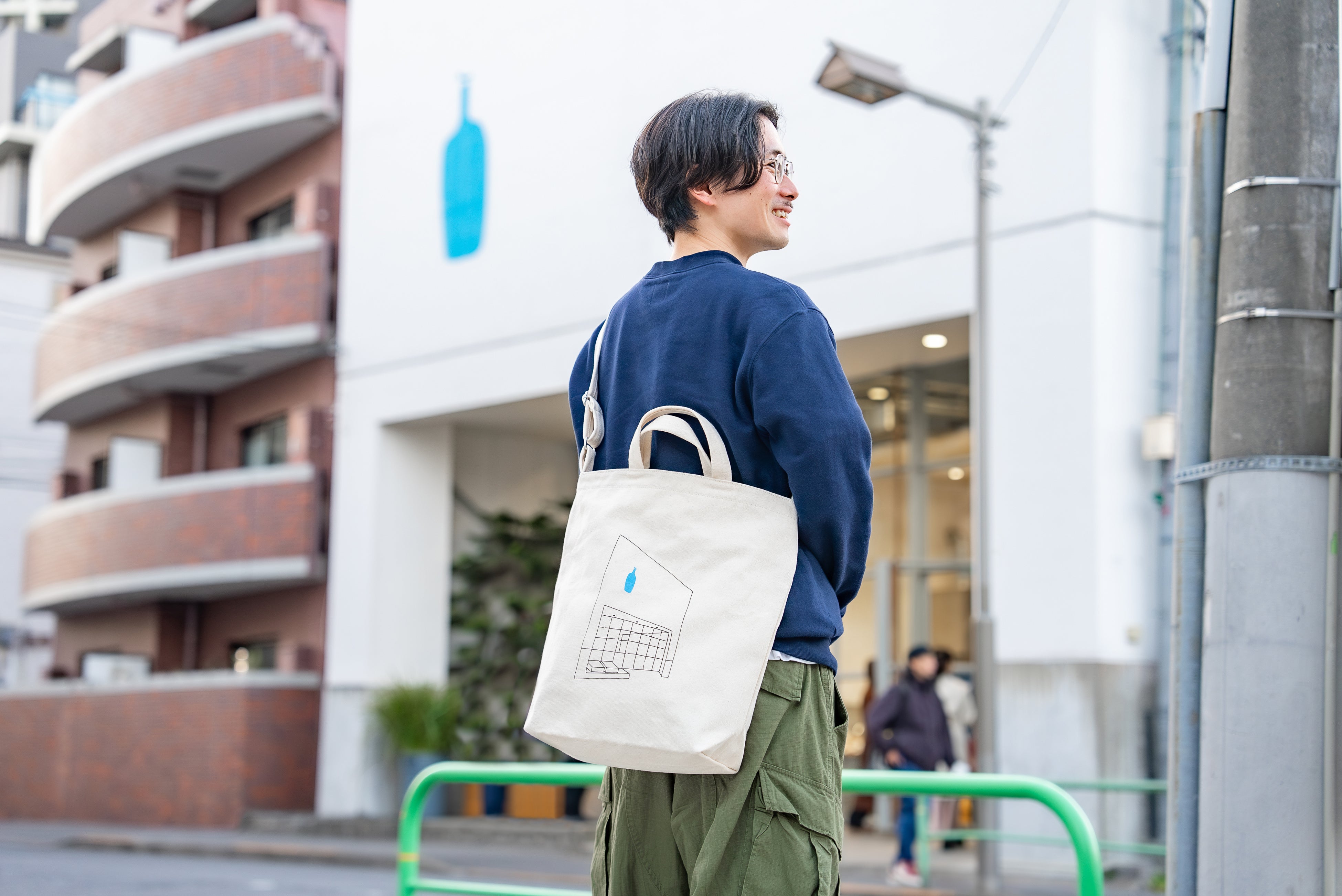 2015年2月、日本初上陸時に限定販売しご好評いただいた「清澄トート」を、日本上陸10周年を記念したリバイバルアイテムとしてご用意。アメリカ・カリフォルニア発の人気バッグブランド「BAGGU(バグゥ)」と共に製作したこちらのトートバッグは、リサイクルコットンを65%使用したサステナブルなアイテム。しっかりとしたキャンバス地で、手持ち・肩掛けの2wayでご使用いただけます。おもて面には清澄白河フラッグシップカフェのイラストが描かれており、内側のタグには日本上陸10周年を記念した「BLUE BOTTLE COFFEE 10TH ANNIVERSARY IN JAPAN」の特別な刺繍が施されています。シンプルなデザインと機能性を兼ね揃え、日常のさまざまなシーンで使いやすいバッグなので、カフェ巡りやおでかけ、旅行や休日のお散歩などにぜひご利用ください。