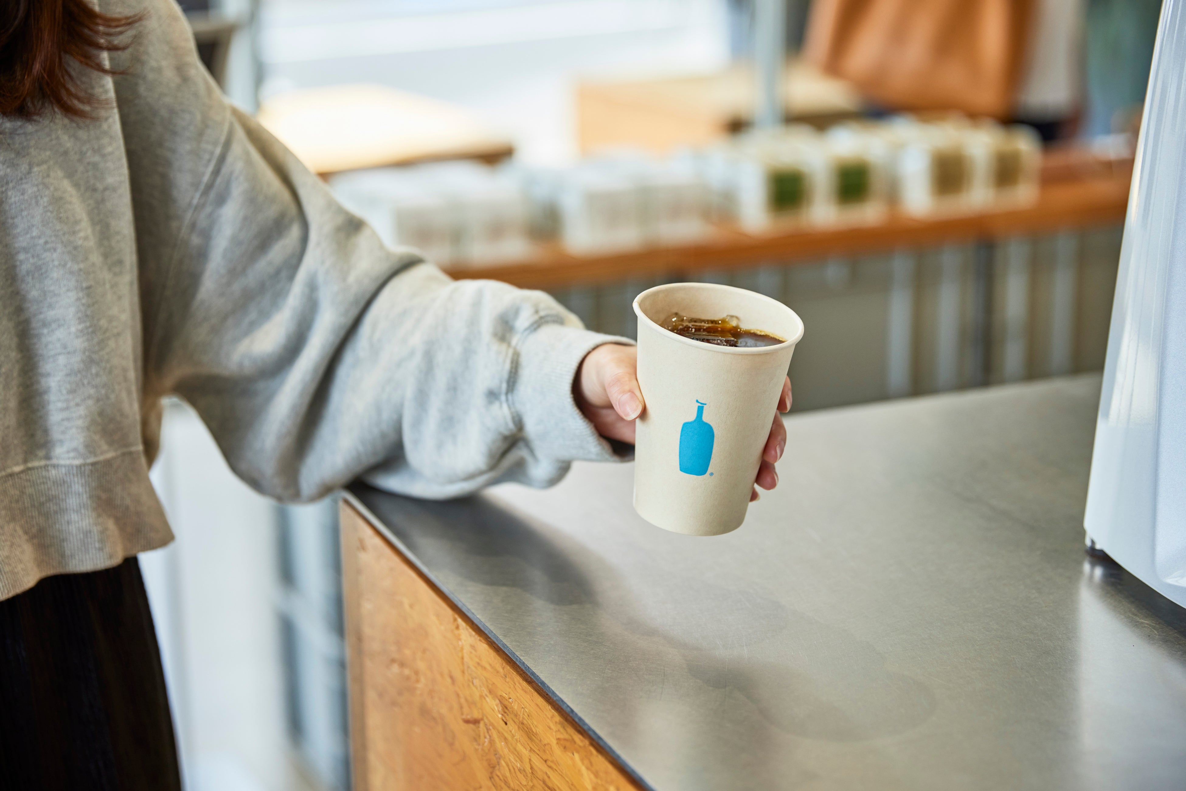 サステナビリティは、ブルーボトルコーヒーが創業当初から大切にしてきた理念のひとつです。おいしいコーヒーを、これからも持続的により多くの方へお届けできるよう、生産から一杯の提供までに関わるすべての人が適正な対価を得て、健全にコーヒービジネスを続けられるサイクルの構築に取り組んでいます。ゲストのみなさまが日々のコーヒー体験を通じて、環境への意識やサステナブルな選択について考えるきっかけになればと考え、さまざまな取り組みを行っています。今回新たにお持ち帰り用のアイスドリンクカップを変更。これまでバイオプラスチック製のカップを使用していましたが、よりサステナブルな素材の「シュガーケーンカップ」へ切り替えを行いました。そのほか、植物性ミルクであるオーツミルクのオプションの無料化、再生可能エネルギーの導入、環境に配慮したオリジナルアイテムの展開、そしてマイカップをご利用いただきやすくする取り組みなど、さまざまな角度から地球へのアクションを提案しています。ぜひこの機会にブルーボトルコーヒーのカフェにお立ち寄りいただき、おいしいコーヒーを楽しみながら、よりサステナブルなライフスタイルへの一歩を踏み出していただけたら嬉しく思います。
