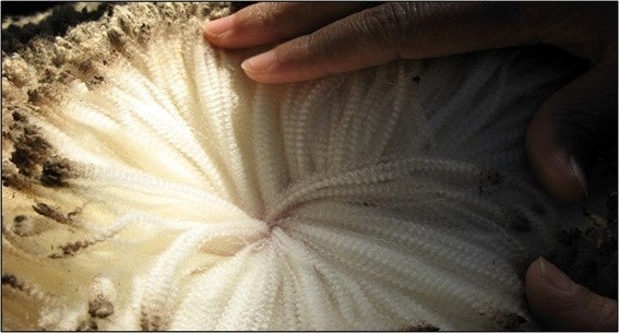 毛が長く、クリンプと呼ばれる縮れがたくさんあります。これが、品実の良い毛の証です。かつてはモンゴルにも、このような毛の羊がたくさんいました。