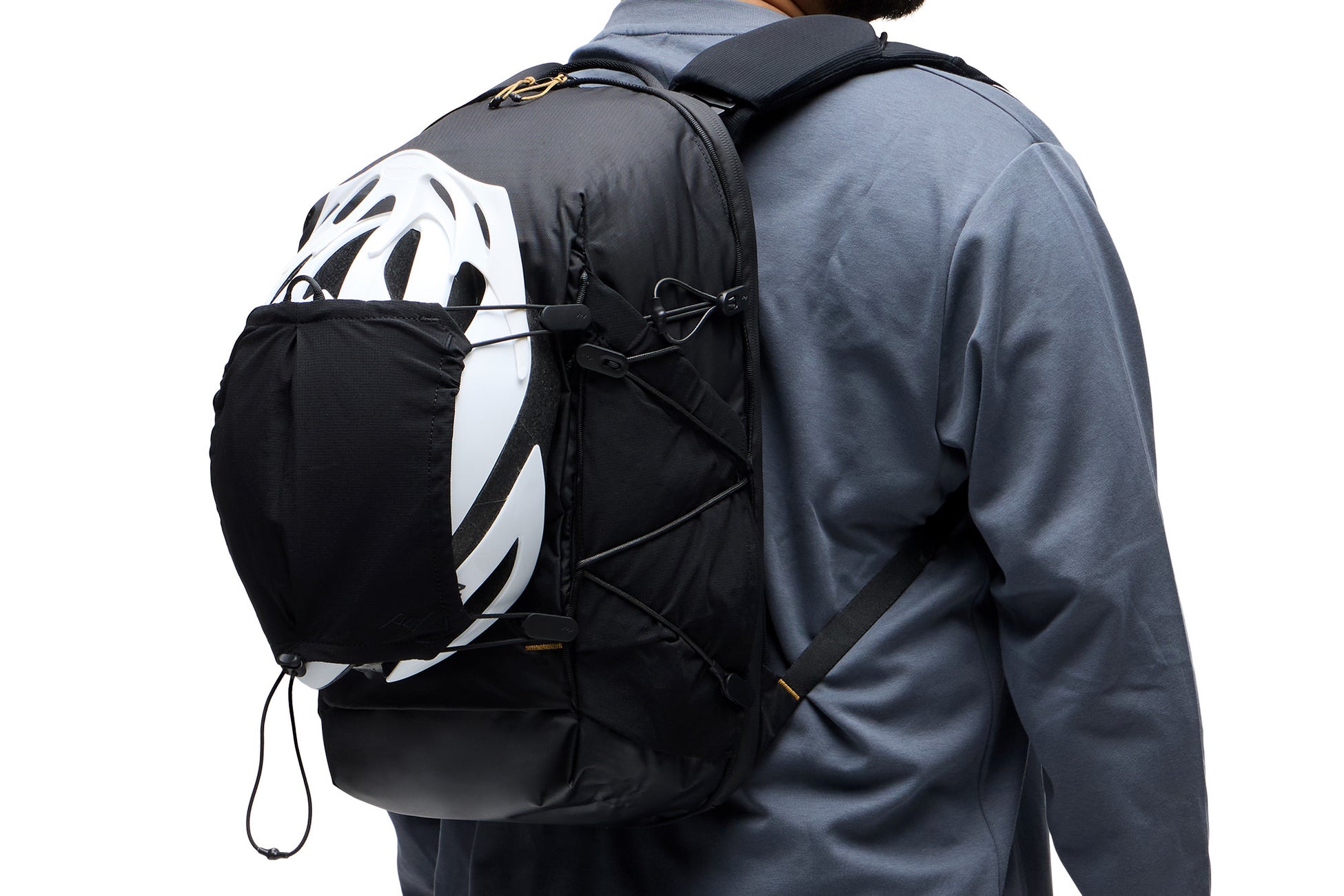 ピークデザインの「ヘルメットキャリー」は、自転車やスキー、クライミング用のヘルメットを、ピークデザイン製バックパックの外側に安全かつスマートに取り付けて持ち運べるハーネスです(※1)。