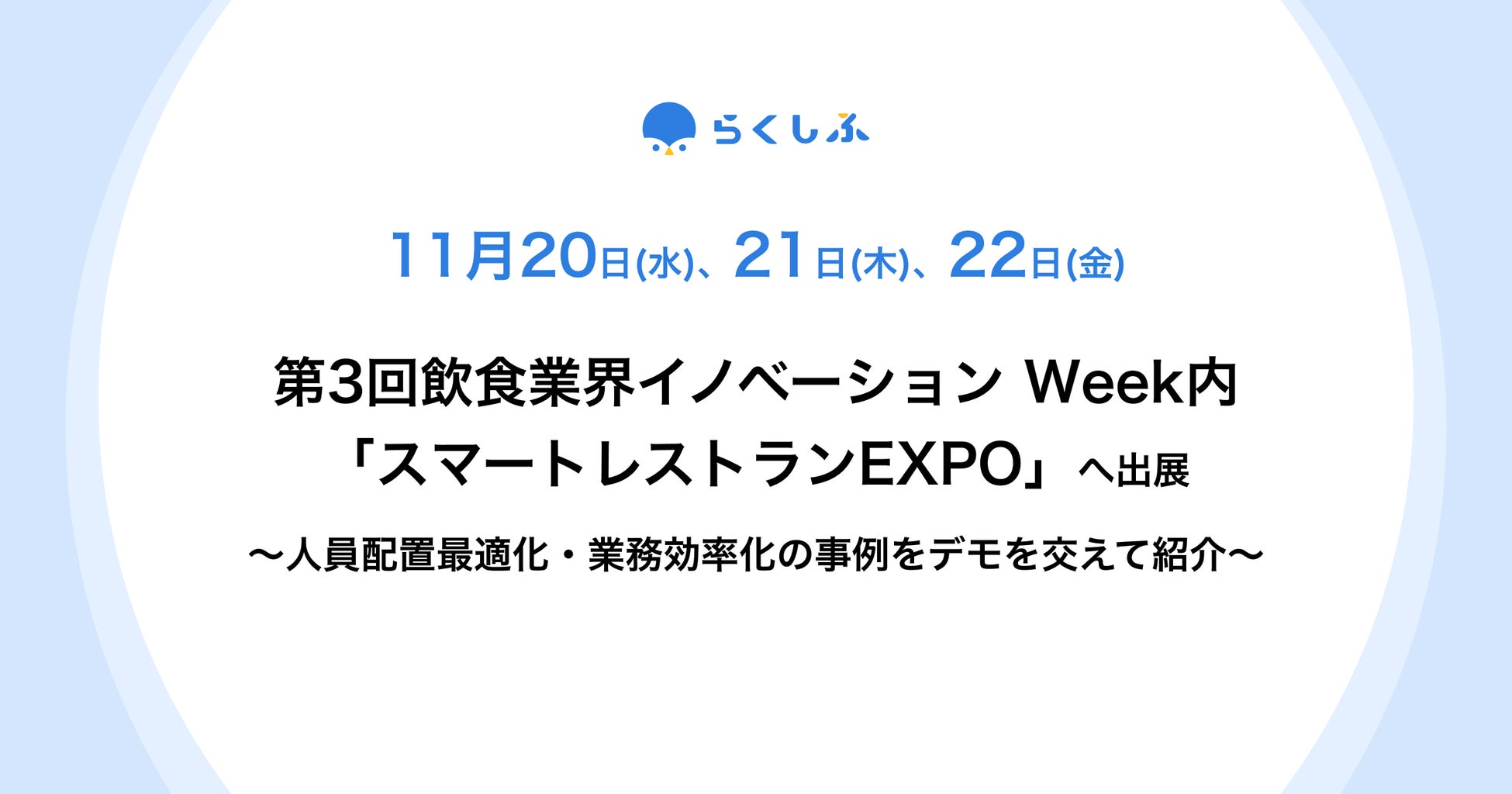 シフト管理DX『らくしふ』、第3回飲食業界イノベーション Week内「スマートレストランEXPO」に出展