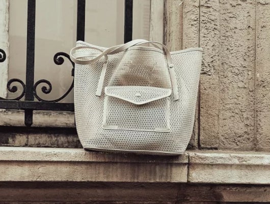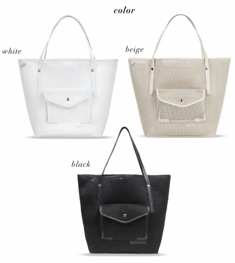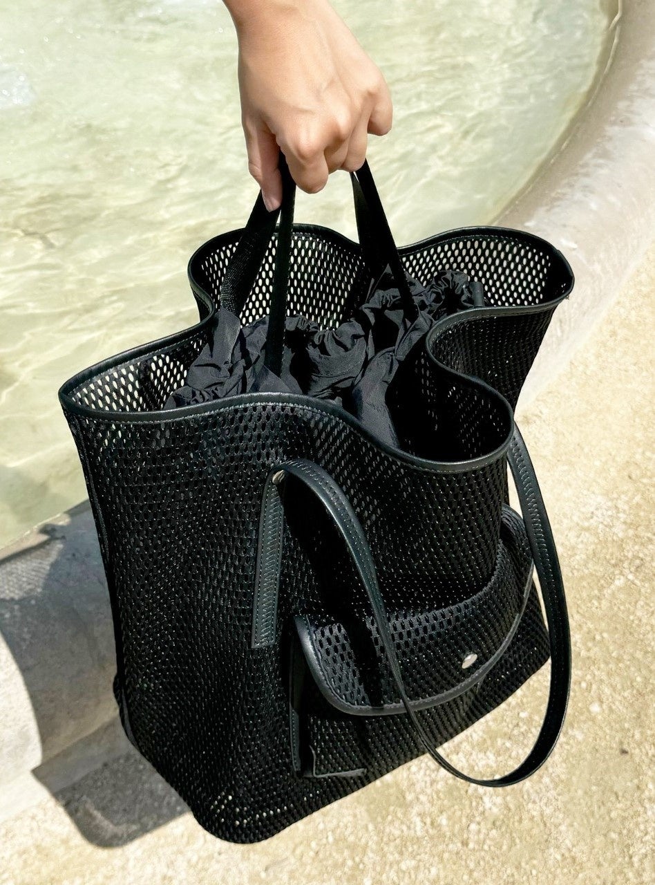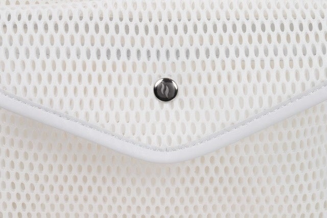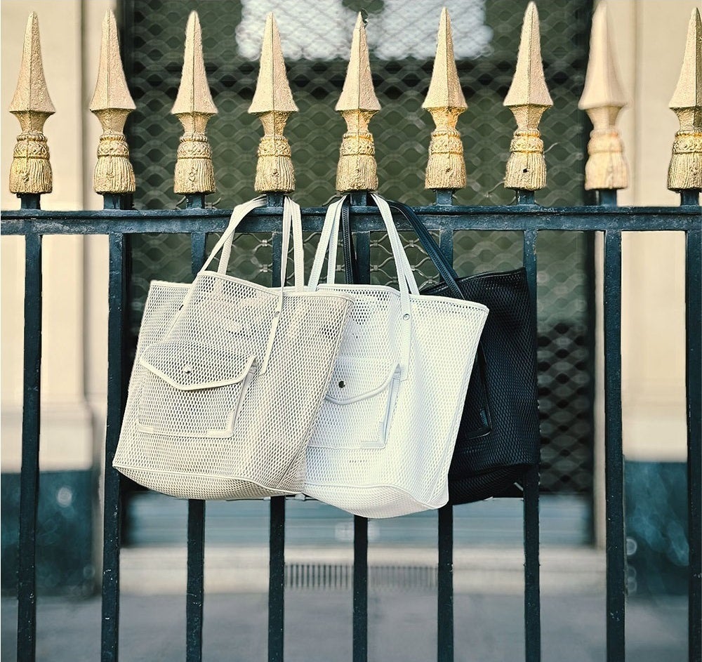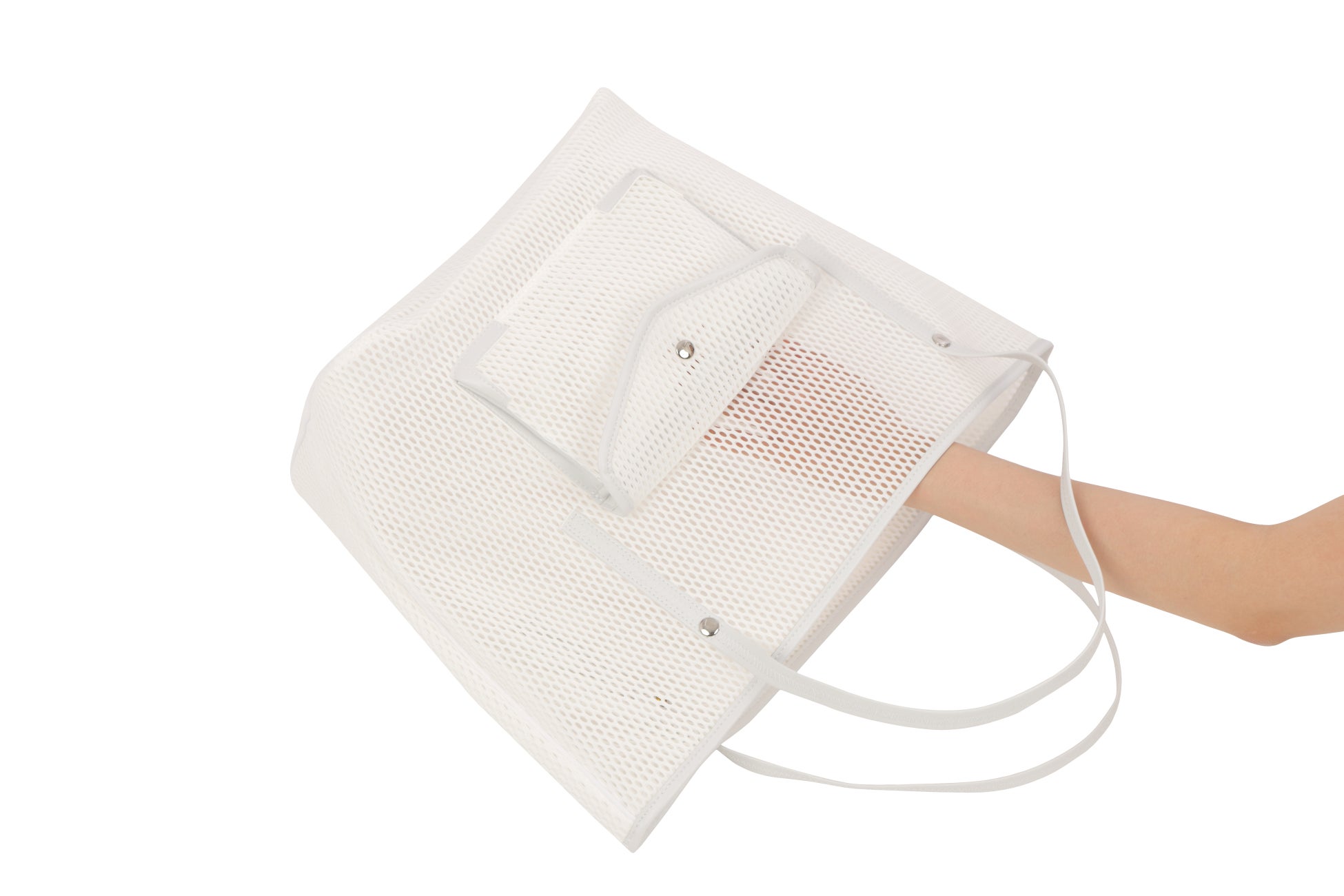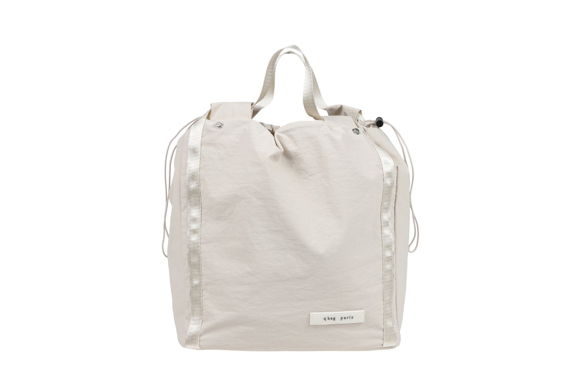 q bag parisのアイテムに多く使用している「nest(ネスト)」素材。凱旋門を中心に放射線状に広がるパリの街からインスパイアされ網目状になっているのが特徴で、超軽量かつ汚れたら洗うこともでき、すぐに乾いてシワになりにくいなど実用性は抜群。「nest w bag(ネスト ダブル バッグ)」に使用している「ネスト20」は、従来のネスト素材で重ねていた布をなくすことで、さらに風通しよく、透明感を出すことに成功。厚みのある生地で高級感もあり、オールシーズン持つことができます。