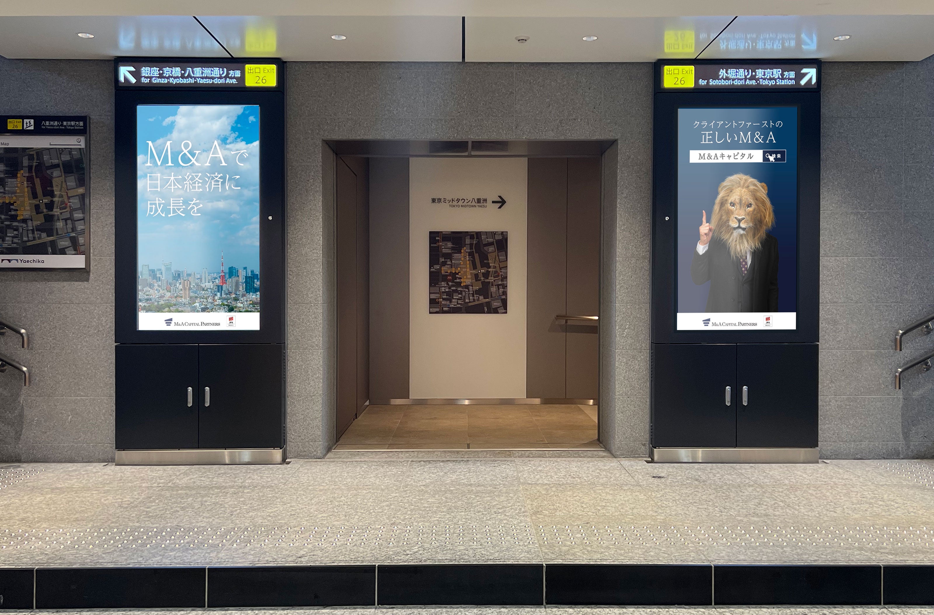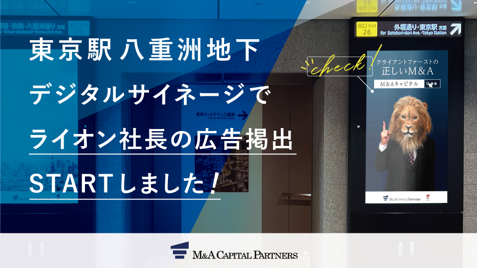 M&Aキャピタルパートナーズ、ヤエチカで「ライオン社長」のデジタルサイネージ広告がスタート!