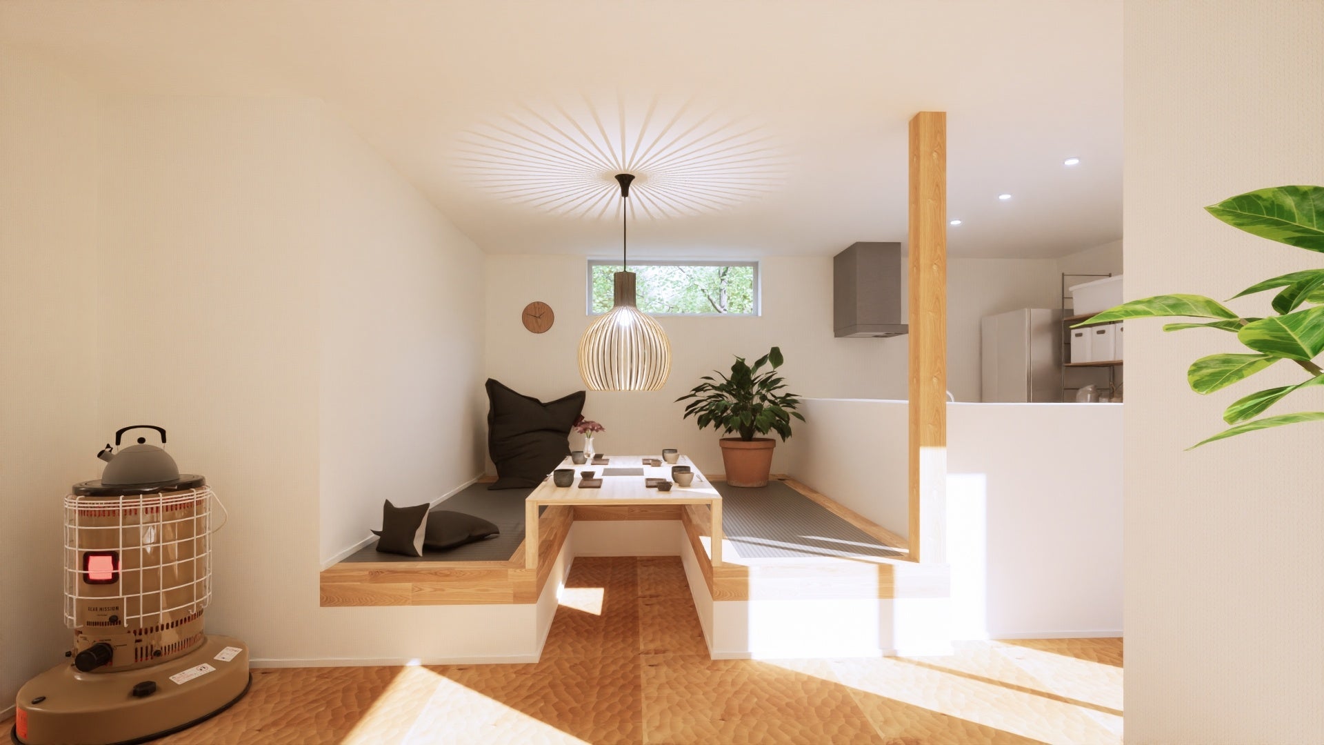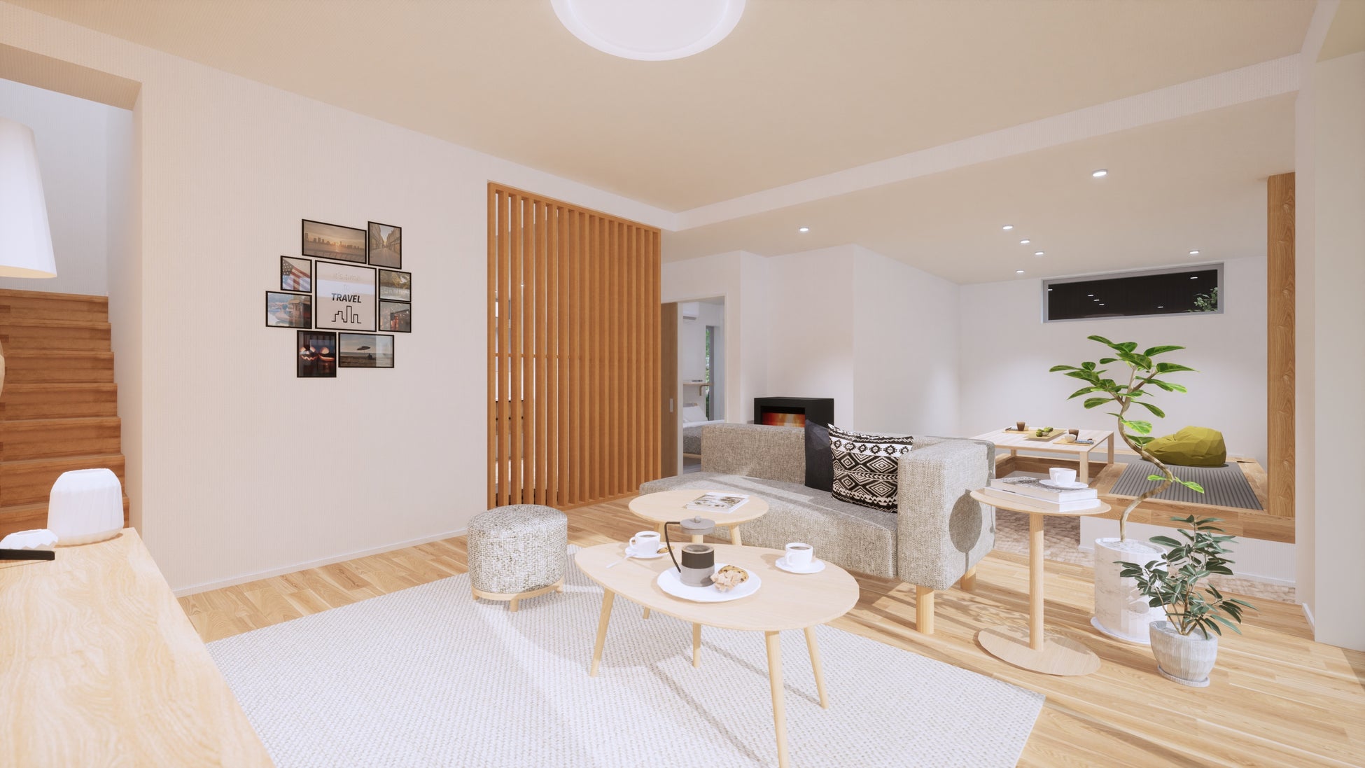 ・自然の力を活かして快適な住環境をつくる設計手法「パッシブデザイン」を採用し、自然の営みに寄り添う心地よい住まいを実現しました。また室内にいながらも四季の移ろいや外の風景とつながりを感じられる空間も演出し、暮らしの中で自然との一体感を楽しめます。
