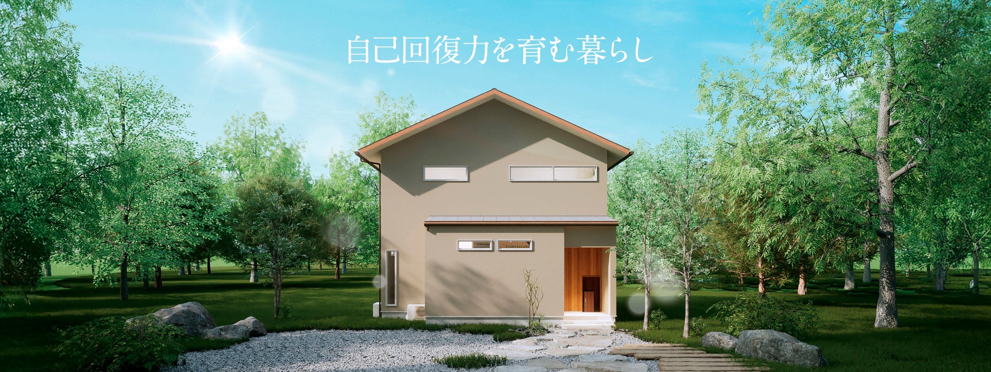 本プロジェクトで再春館製薬所が大切にしたのは、「健康寿命延伸」・「生体リズム」・「自然との共生」というキーワードを軸にした「長く、すこやかに、美しく、いつまでも自分らしく生きる」というテーマ。単なる健康寿命の延伸のみを目的とした家ではく、日々の暮らしの中で心と体の調和を促し、よりすこやかで美しく生きるために欠かせない"自己回復力"を引き出す住まいとして設計しました。