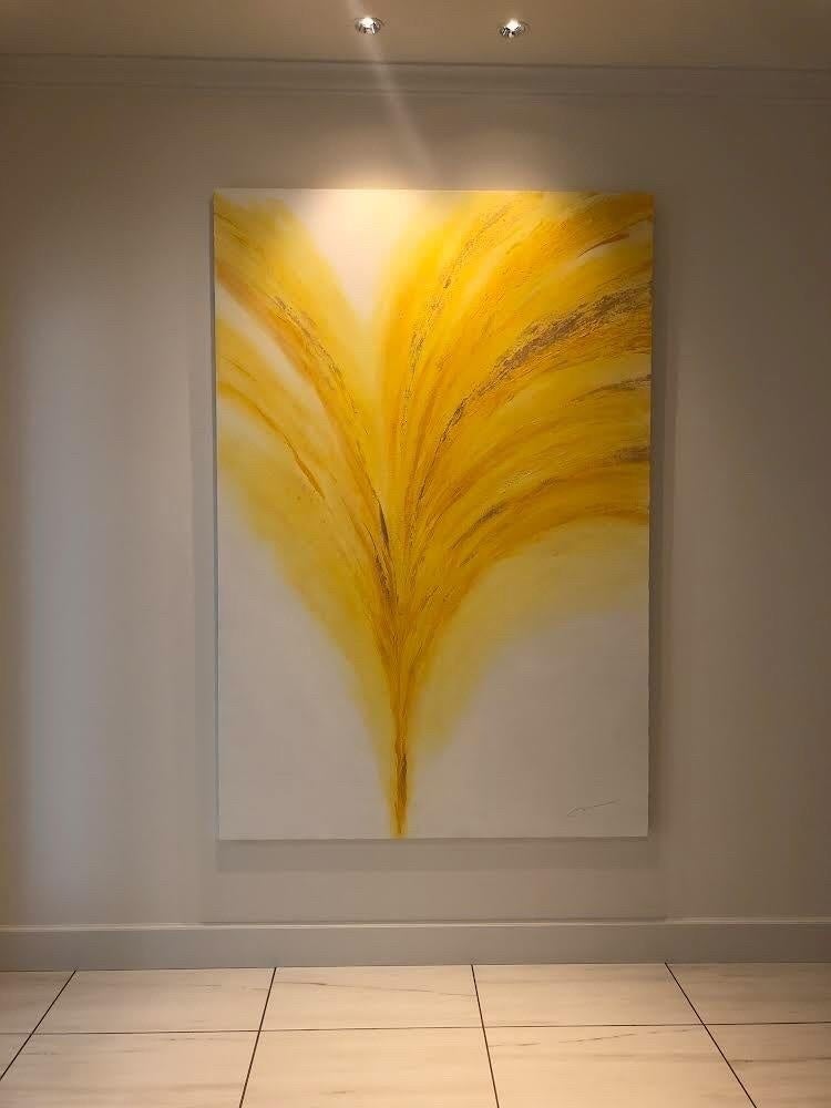 プロフィール:2020年、出産とコロナ禍を機に本格的な活動を開始。「理想を叶えるアート」をコンセプトに、シックさと華やかさを両立したモダンな空間に合う絵を描き続ける。自身も0歳、2歳児の育児に奮闘中。