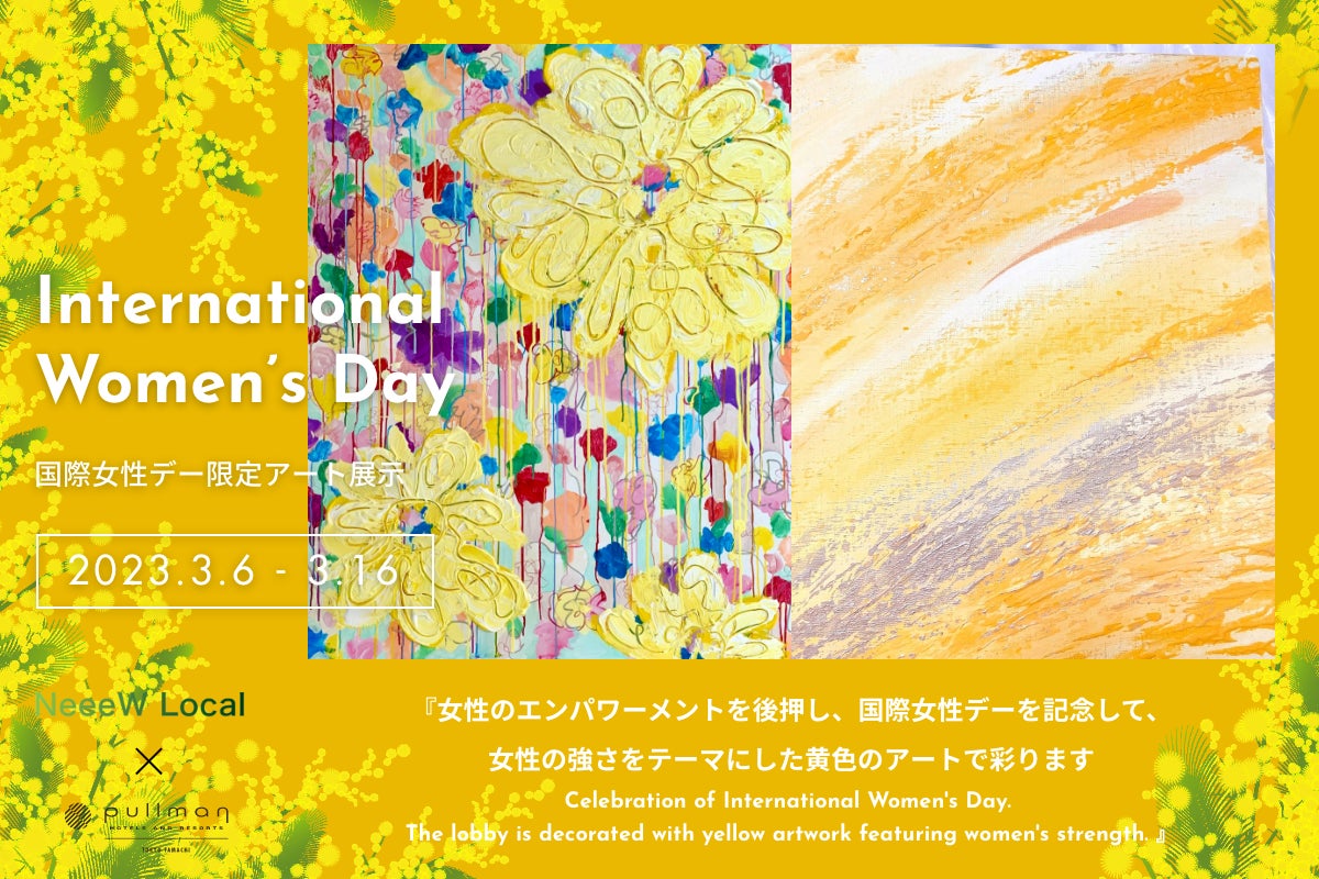 ジェンダー平等社会と女性のエンパワーメント推進のため、7名の女性アーティストが描く女性の強さをテーマにした 16点の作品をロビーに展示。ミモザをあしらったシャンパンの提供などの特別キャンペーンも。