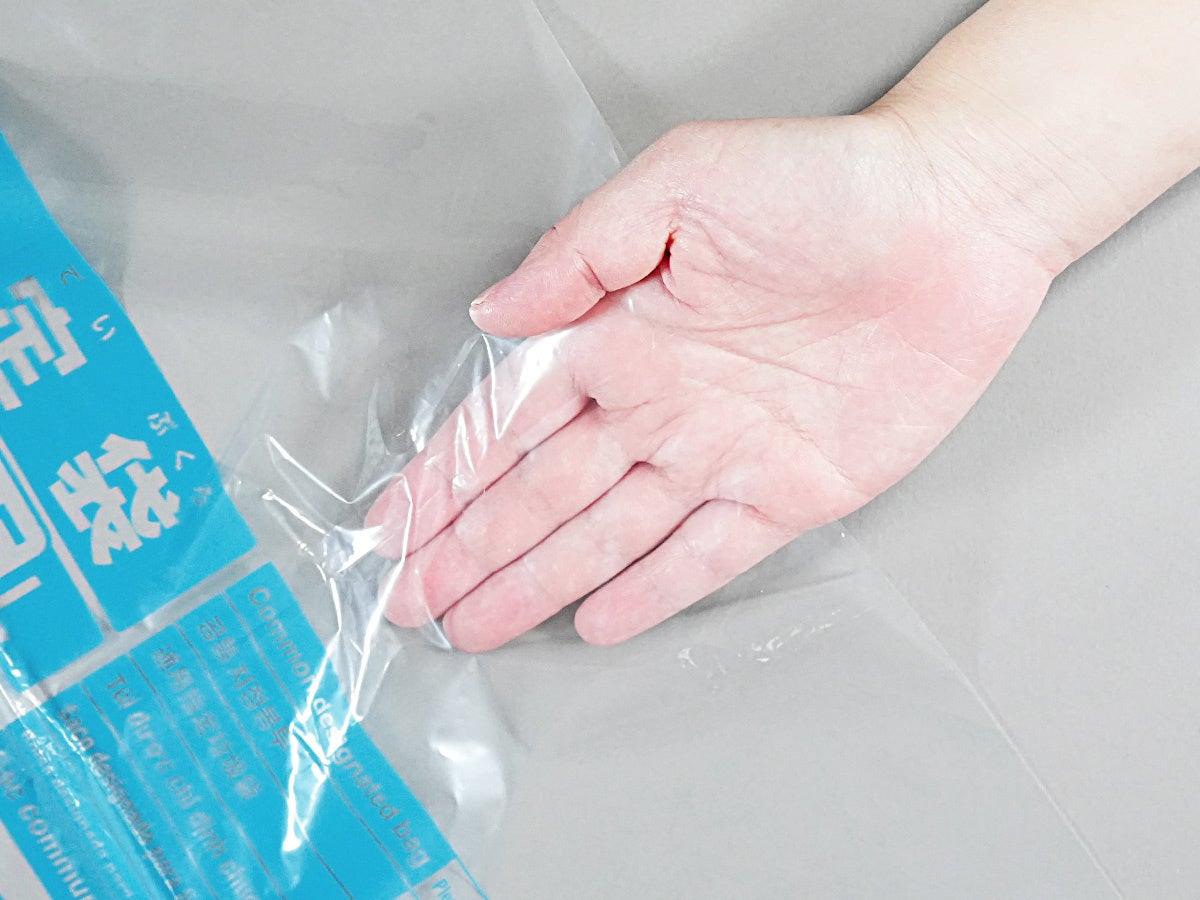 今回発売する「共通指定袋」は、とって付きの15L(20枚 0.025mm)、30L(20枚 0.025mm)と、平袋の45L(20枚 0.025mm)の3商品です。