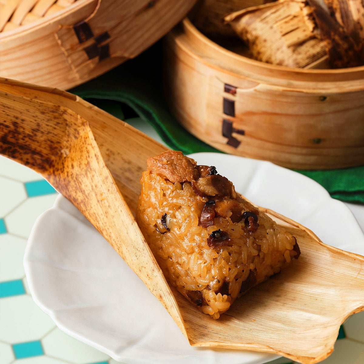 国産もち米のおいしさを生かした中華風の混ぜおこわに、国産豚の角煮を加え、手作業で竹の皮に包みました。モチっとしたおこわの食感と角煮の旨みが口の中で広がります。