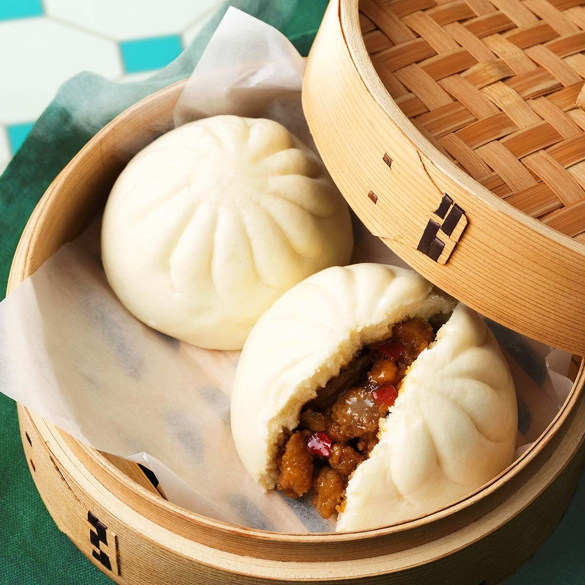黒酢が効いた本格的な味わいの酢豚を、ふんわりとした生地で包みこみました。ごろっと入った酢豚のコク深い味わいがたまらない一品です。