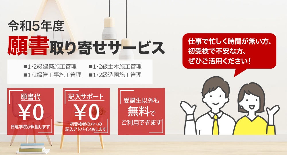 2023年度 各種施工管理試験「受検願書取り寄せサービス」《願書代は日建学院が負担!》《初受検者への記入サポート》