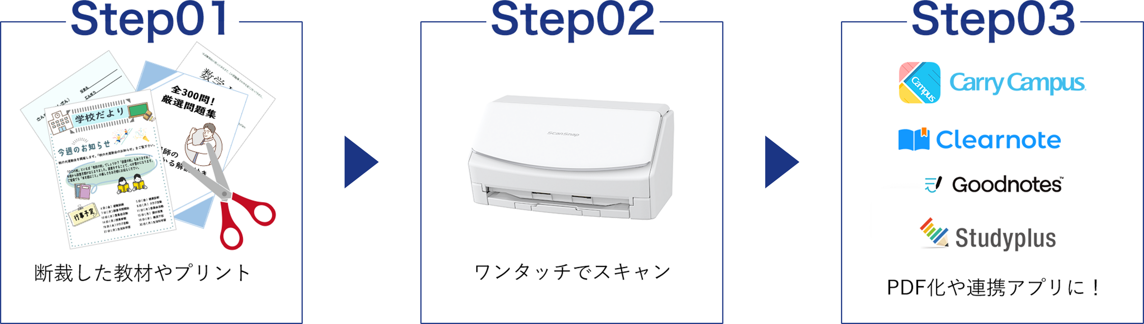 ScanSnapは、情報整理に長けたスキャナーです。紙の教材はScanSnapでスキャンしてデータ化することで、普段の勉強をさらに効率化できます。