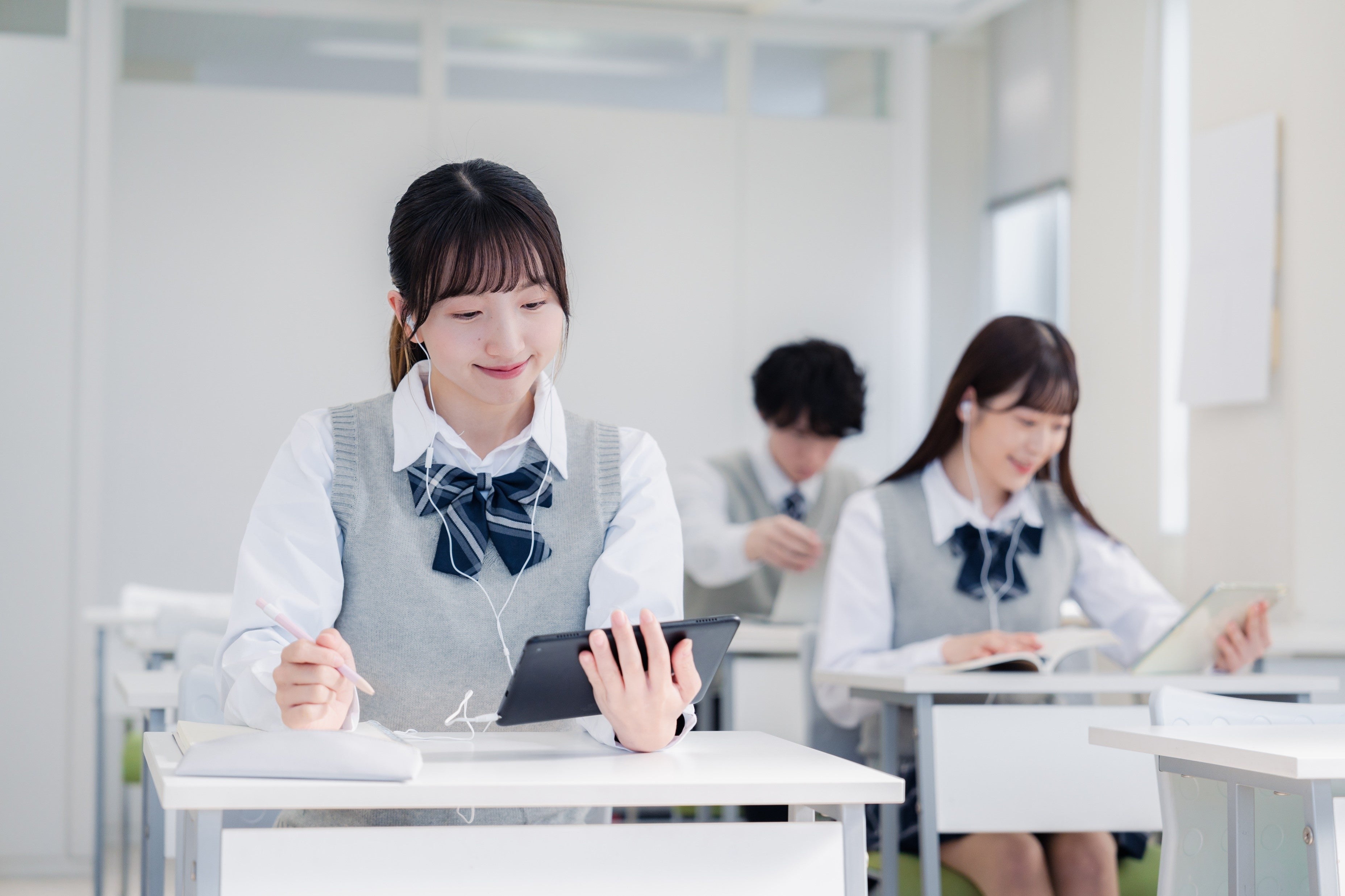 - スキャンした教材・ノートをスマホやタブレットで閲覧、通学途中にスマホで教材を確認、友人とのオンライン通話サービスで相談しながら勉強など、様々な用途でデジタル学習を活用。