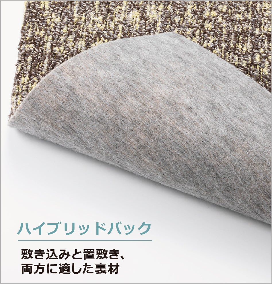 裏に不織布を織り込んでおり、下地を傷つけにくいため、敷き込みの施工はもちろん、置敷きにも適しています。