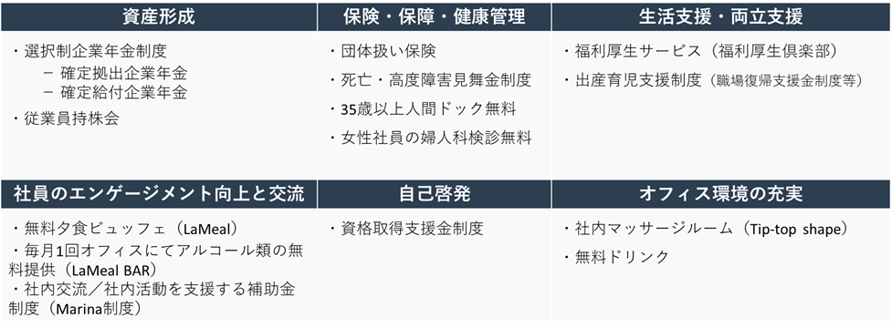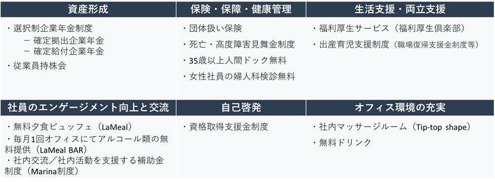 ラキールにおける福利厚生の主な制度や取り組みについて
