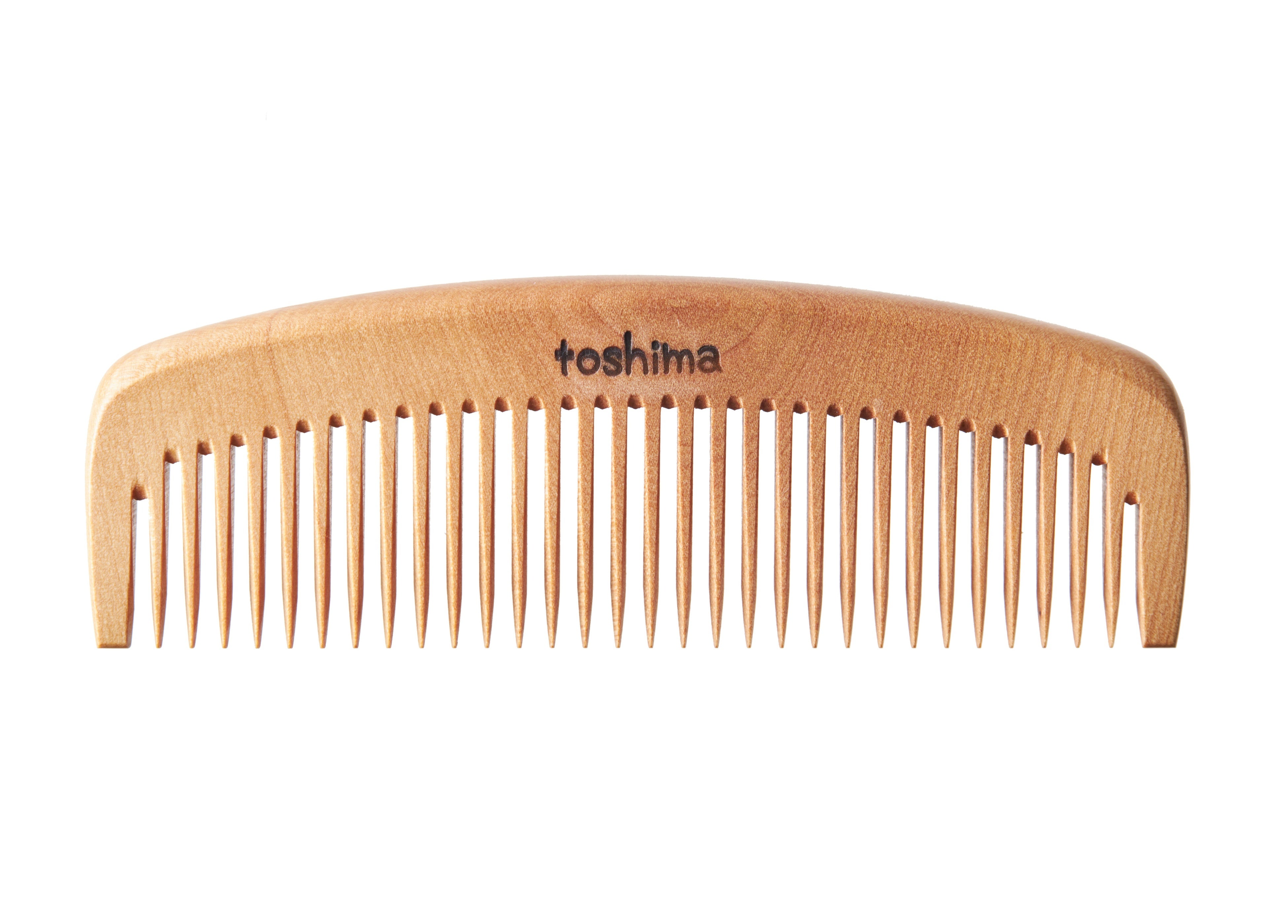 間伐材を使い、昔ながらの手仕事で製作。歯の1本1本を研磨し、椿油で仕上げており使うほどに髪にツヤが出てくる一品です。椿林の手入れのために伐採される木をリユースし、原木から約3年をかけてじっくり作り上げているので、ヘアオイルとともに長くお使いいただけます。