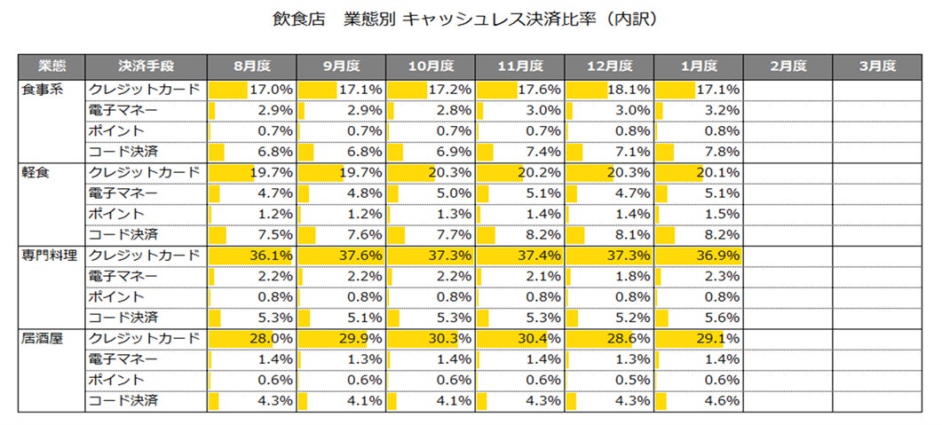その中でも業態別で見ると軽食が少しずつキャッシュレス決済比率を伸ばしている。
