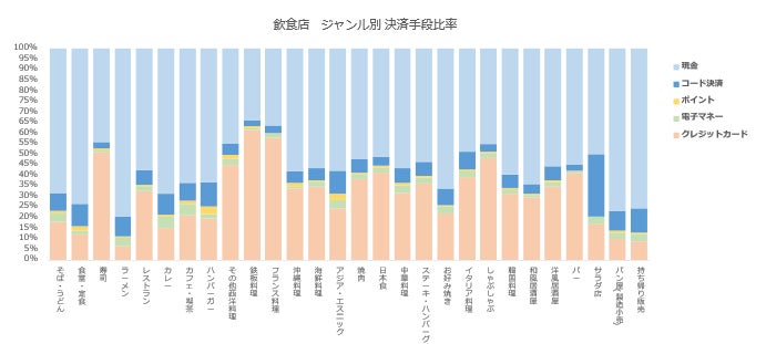 集計内容:飲食店 ジャンル別 キャッシュレス決済方法比率、キャッシュレス決済比率(内訳)