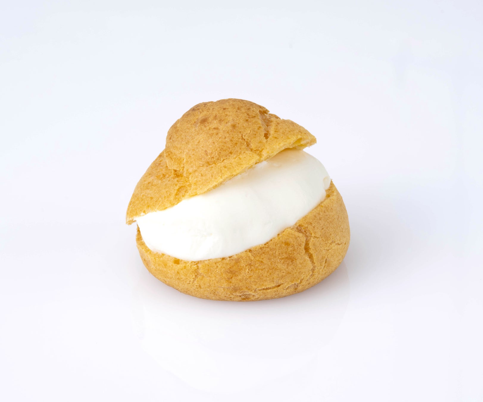 創業当時から販売していた、少し卵が多めの柔らかくしっとりしたシュー生地に、濃厚で自然な甘さ、すっきりとした後味の生クリームをたっぷり詰めたシュークリームです。
