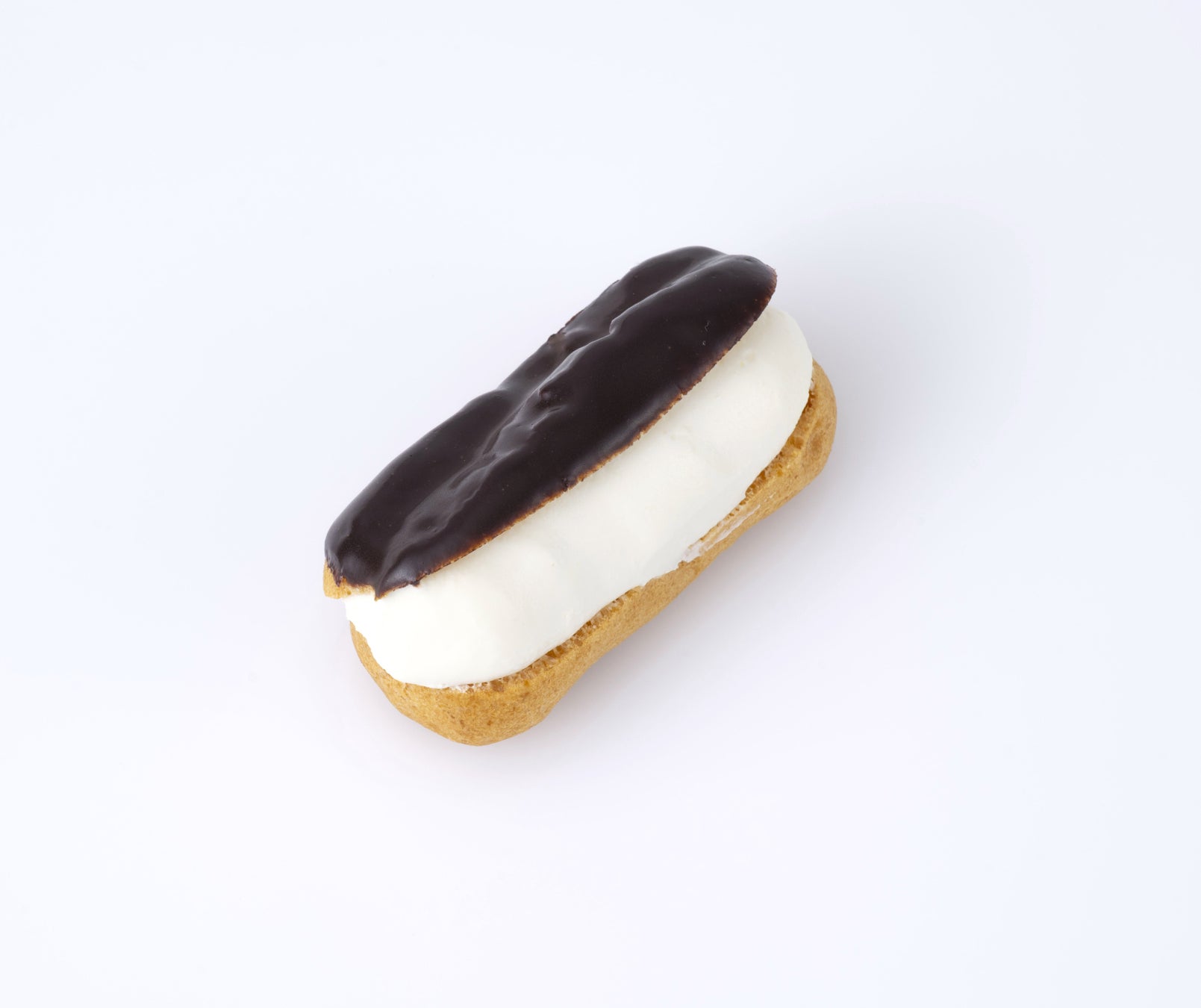 少し卵が多めの柔らかくしっとりした生地に生クリームをたっぷり詰め、創業当時から変わらないカカオマスとシロップのみのチョコレートで仕上げた、懐かしい味わいのエクレアです。