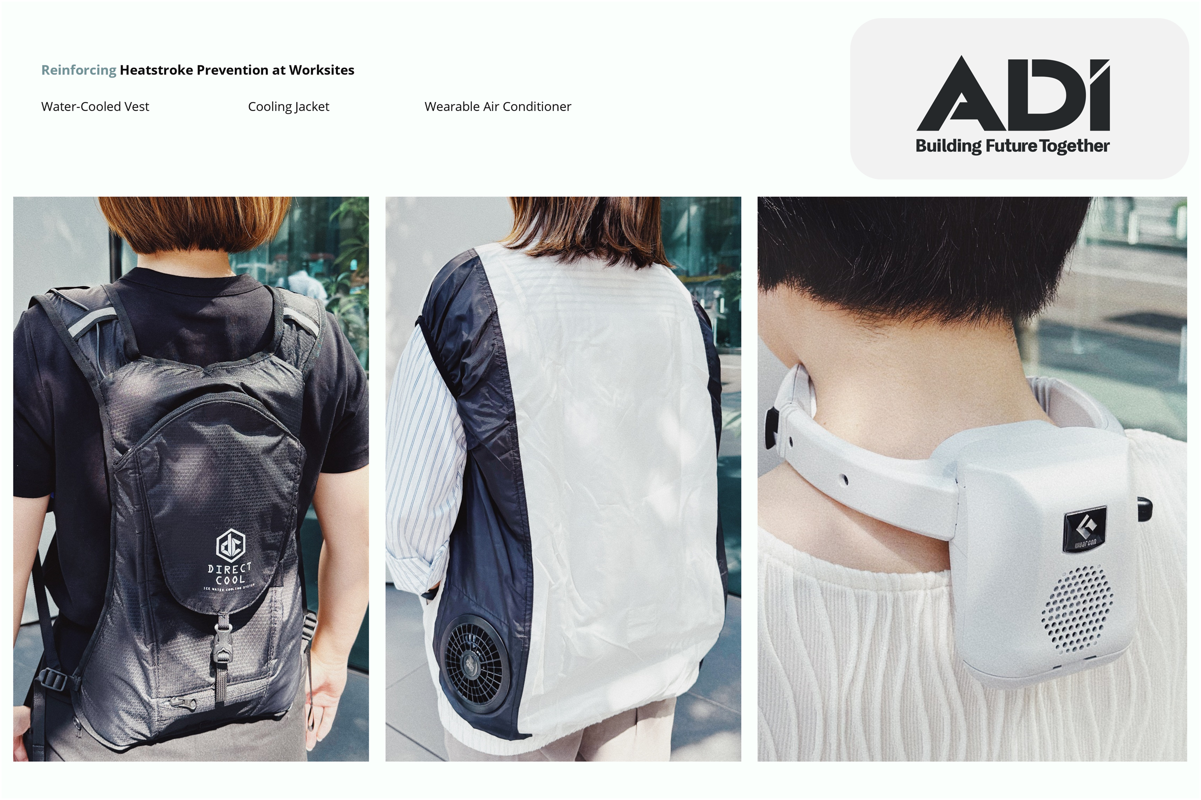 株式会社アーキテクト・ディベロッパー(本社:東京都中央区銀座、代表取締役社長:木本 啓紀、以下「ADI」)は、職場での熱中症による死亡災害が毎年30件を超えるという厚生労働省の発表を踏まえ、一昨年から進めてきたウォーターサーバーやスポットクーラーの設置に加え、2025年6月1日施行の改正労働安全衛生規則を契機に、熱中症対策を一段と強化しました。また、新たな規則では、初期症状の早期発見と報告体制の整備、応急処置と搬送手順の策定が義務付けられており、これに対応する形で装備・体制の両面から現場環境を見直しました。特に今年は、ウェアラブルエアコン※、水冷式ウェア、クールウェアの3種を新たに導入。予防と即応を両立する体制づくりに力を入れています。