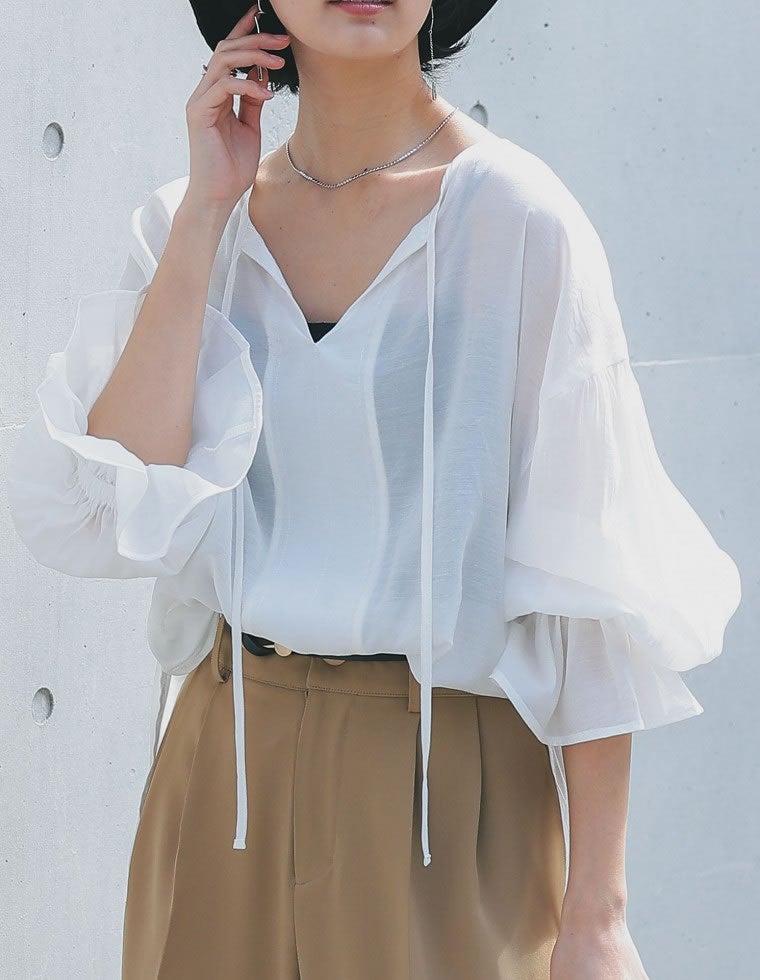 ボリュームスリーブカフタンシアーブラウス