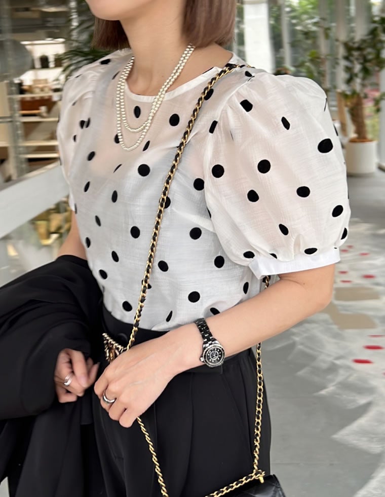選べるドット柄パフスリーブシアーブラウス