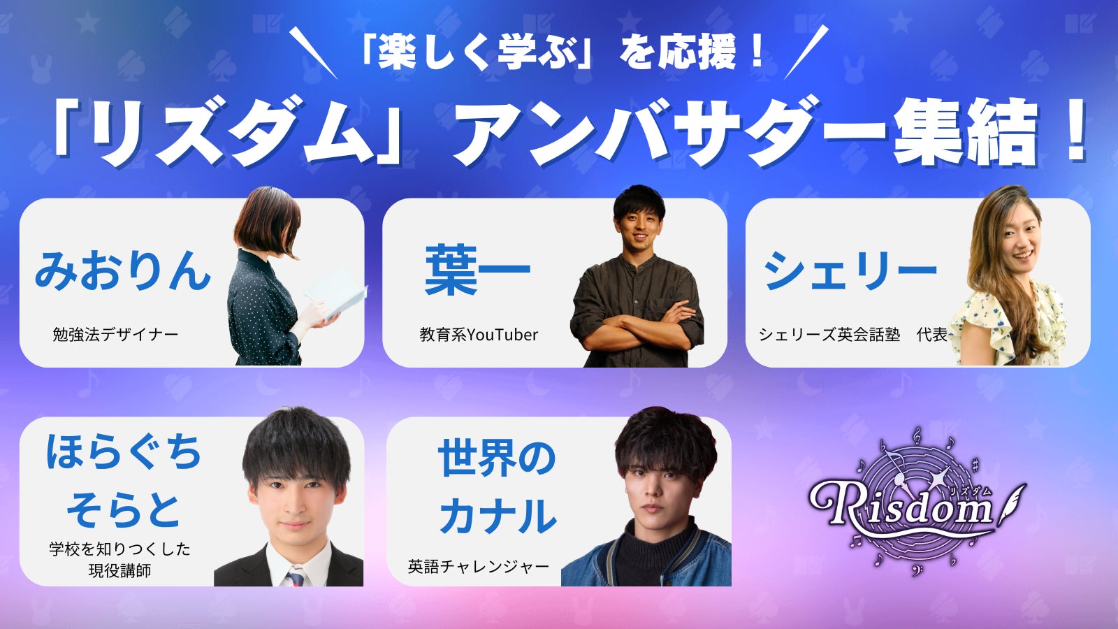YouTubeのチャンネル登録者200万人超えの「とある男が授業をしてみた」で有名な葉一さんや、東大卒の勉強法デザイナーみおりんさんなど豪華なインフルエンサーが、この度「リズダム」アンバサダーに就任しました。