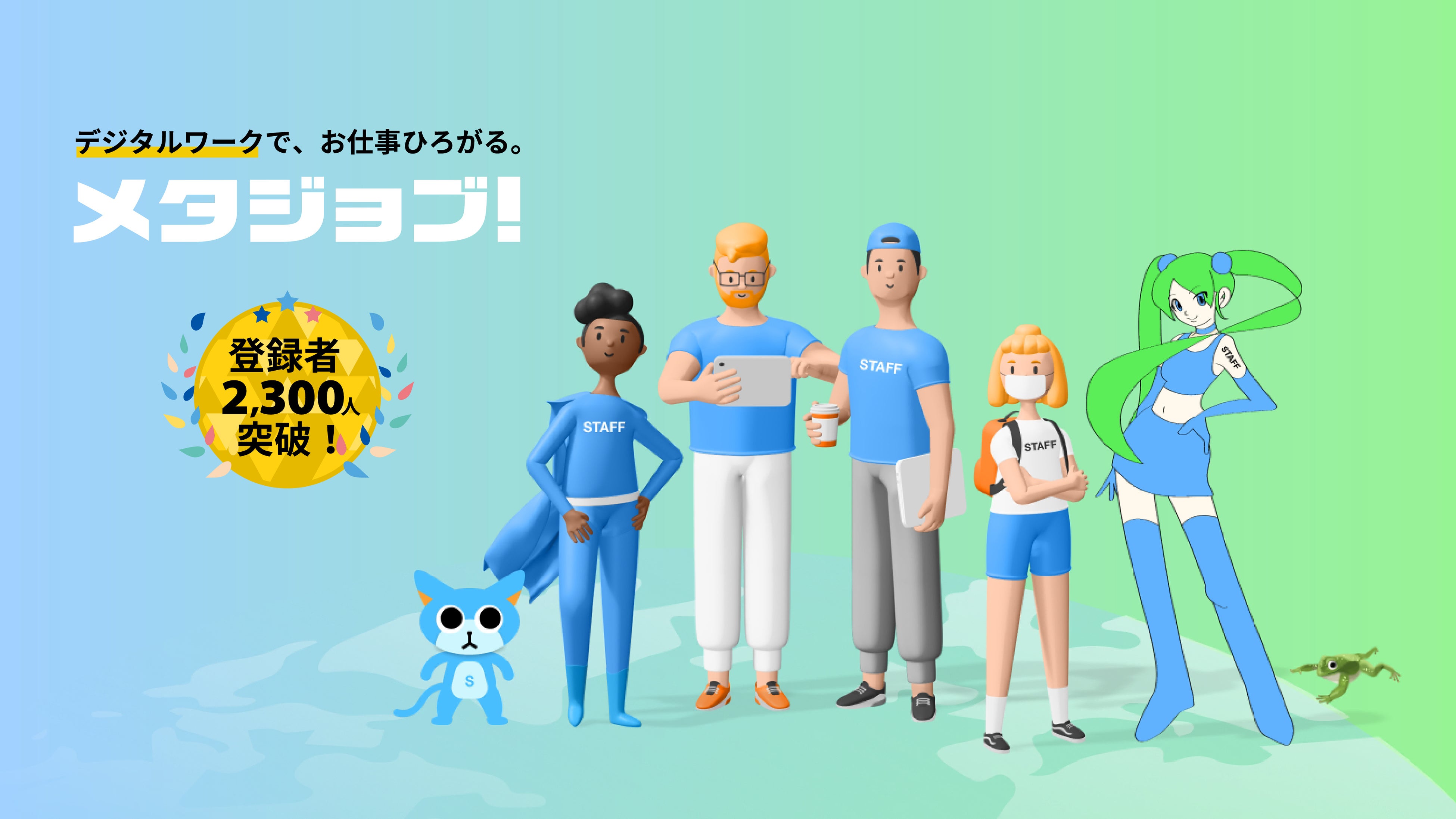 メタジョブ!では、2021年10月のβ版サービス開始以来、延べ1,000人以上に対し働く機会をマッチングしてきました。「地方やアクセスの悪い地域に住んでいるために仕事の選択肢が少ない」「子育てや介護中でまとまった時間の確保が難しい」「見かけなどが理由で一歩踏み出せない」といった “時間・場所・外見” などの壁を低くし、自由な働き方の可能性を広げ、現在2,300名を超える働き手にご登録いただいております。