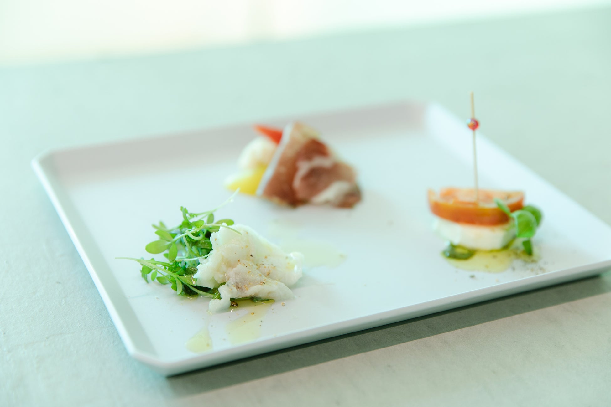 - フルーツトマトとモッツァレラチーズのピンチョ