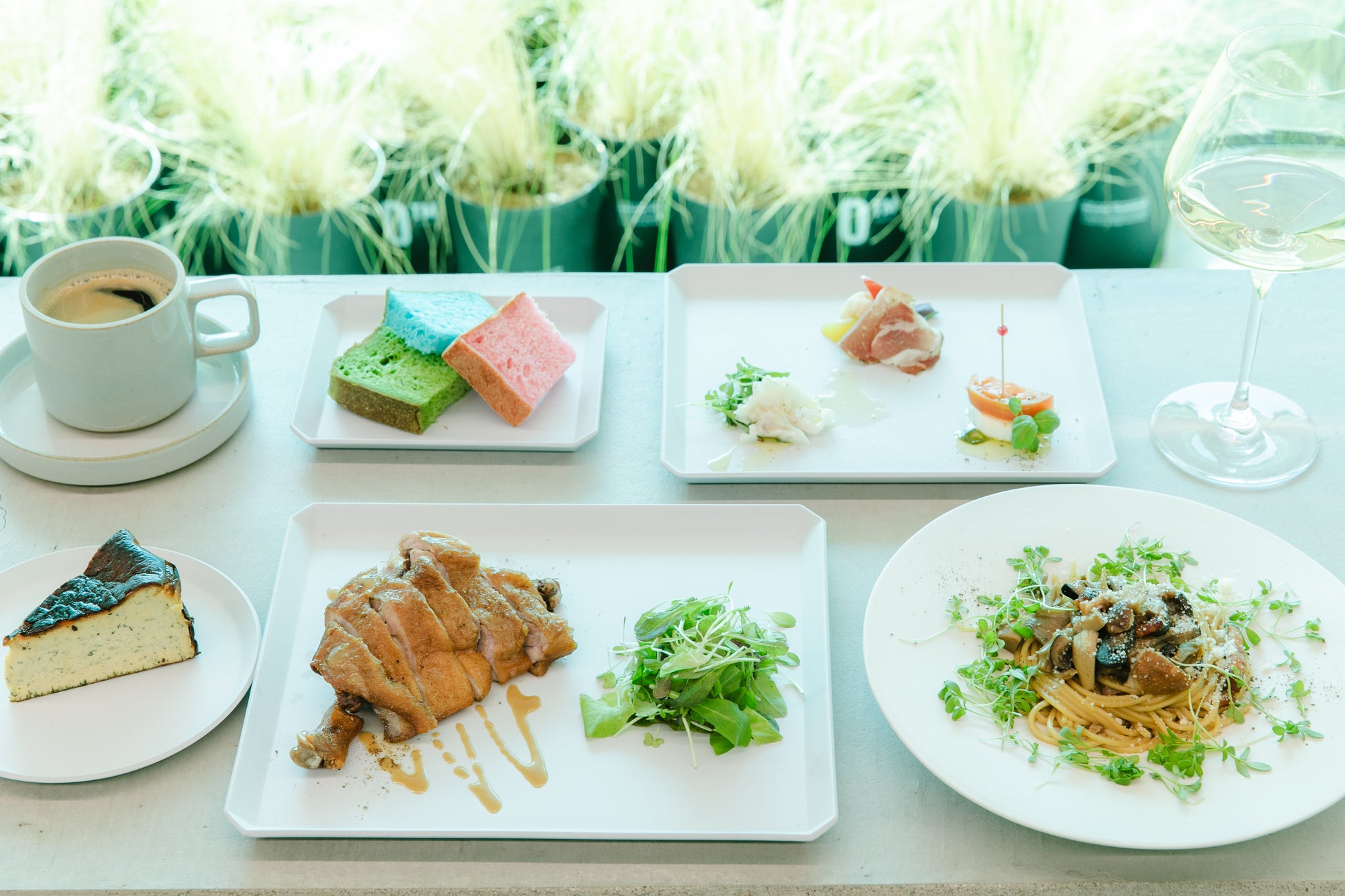 自社栽培している栄養価の高いマイクログリーンを使い、前菜からデザートまで満足度の高いコースに。