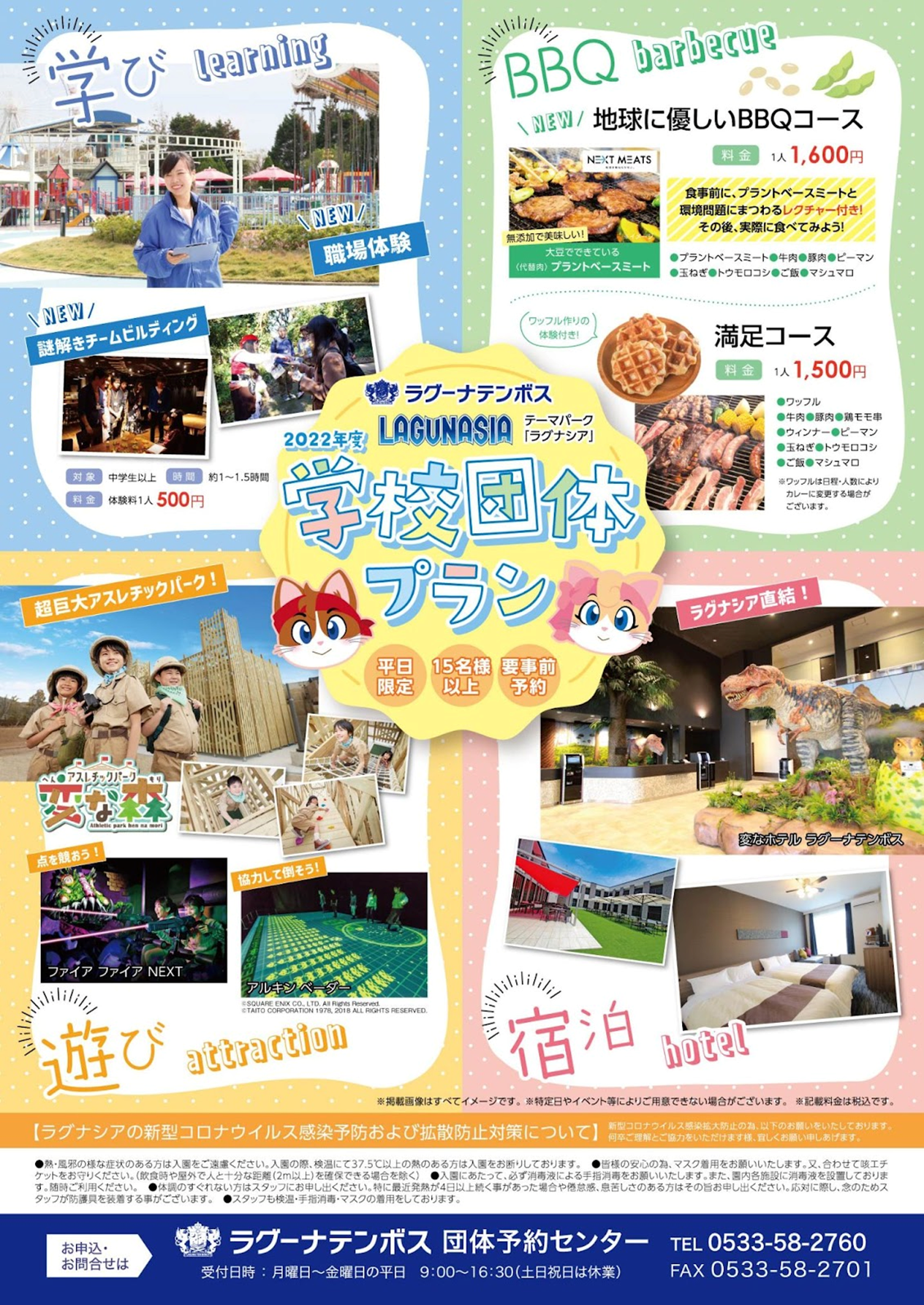 ※予約などのお申し込み・お問い合わせは「ラグーナテンボス 団体予約センター(TEL:0533-58-2760)」にて可能です