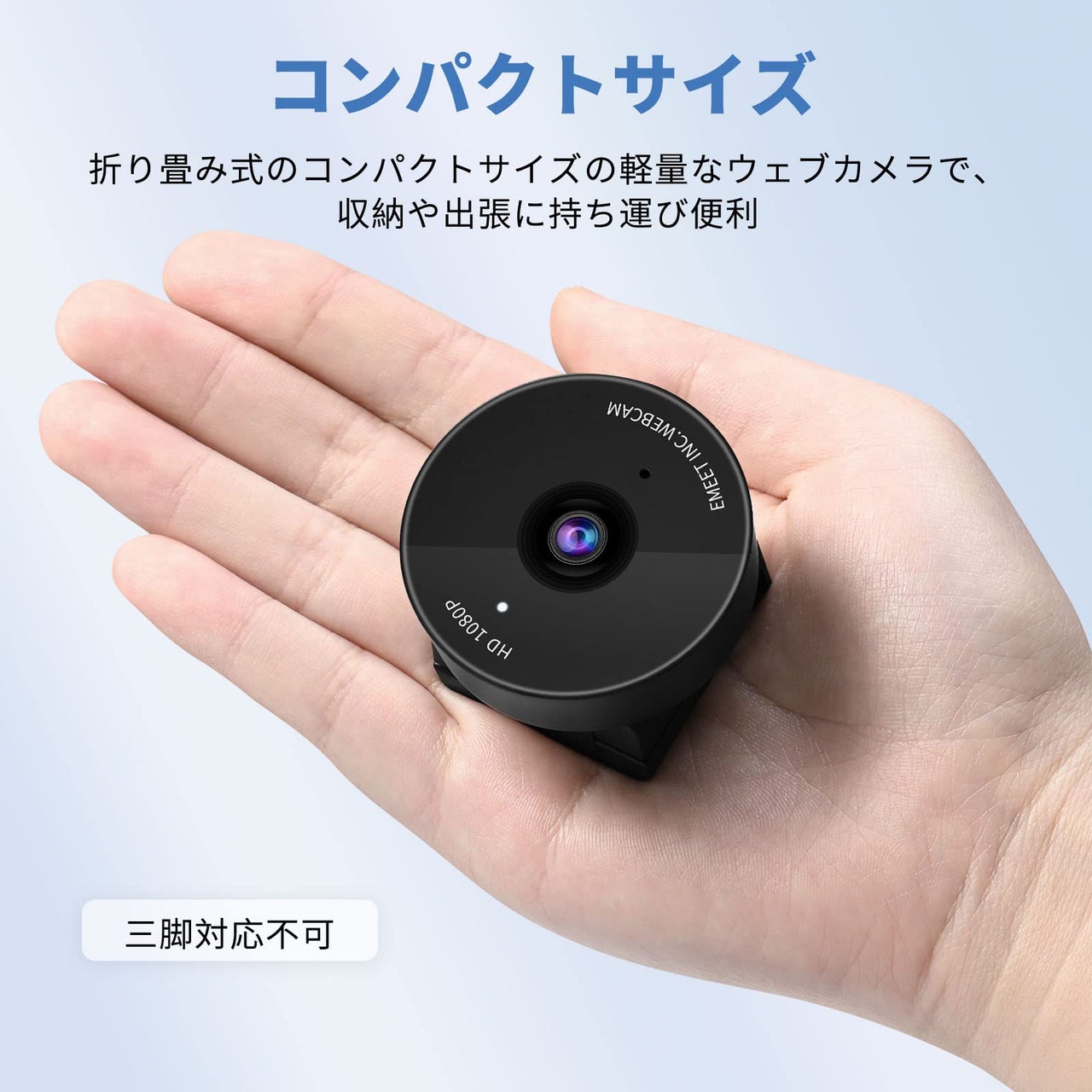 『eMeet C950』は、手のひらサイズの非常にコンパクトなウェブカメラです。 折り畳み式でレンズカバーも付属しているため、収納や外出先への持ち運びにも適しています。