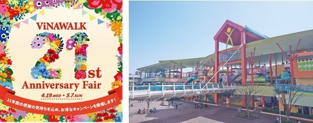 「ビナウォーク」はマルイファミリー海老名、TOHOシネマズ海老名、約140の専門店が集うオープンモール型の商業施設で、2023年4月19日(水)に開業21周年を迎えます。