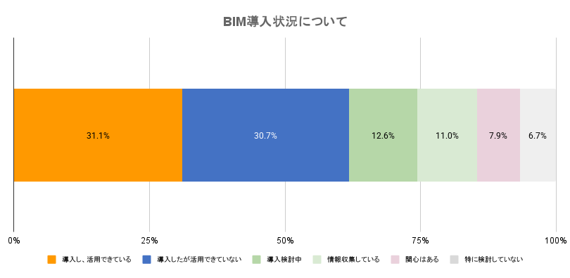 BIMを導入している企業のうち、31.1%が「活用できている」と回答しました。導入後に活用フェーズへと進んでいる企業も着実に現れており、今後は人的リソースの確保や運用定着の支援が、さらなる浸透の鍵となりそうです。