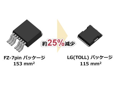 新パッケージを採用することで、従来品※1と比較し実装面積を25%削減。