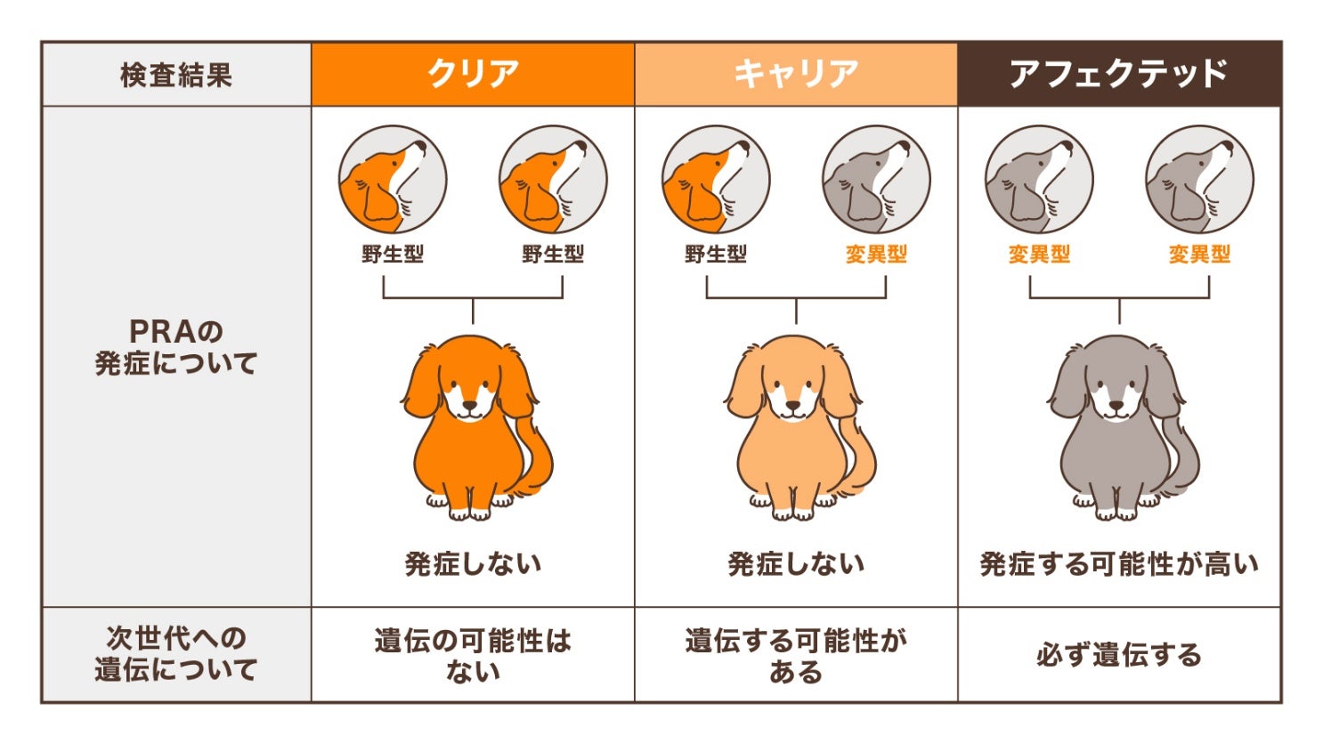 特にPRAのような重篤な疾患は、子犬・子猫の遺伝子病検査のみならず、親犬・親猫の検査を徹底し、「アフェクテッド」や「キャリア」が持つ変異型の遺伝子を引き継がない交配を行うことが重要です。膨大な労力と時間がかかる地道な方法ですが、この方法が倫理的でかつ世界的なスタンダードでもあります。