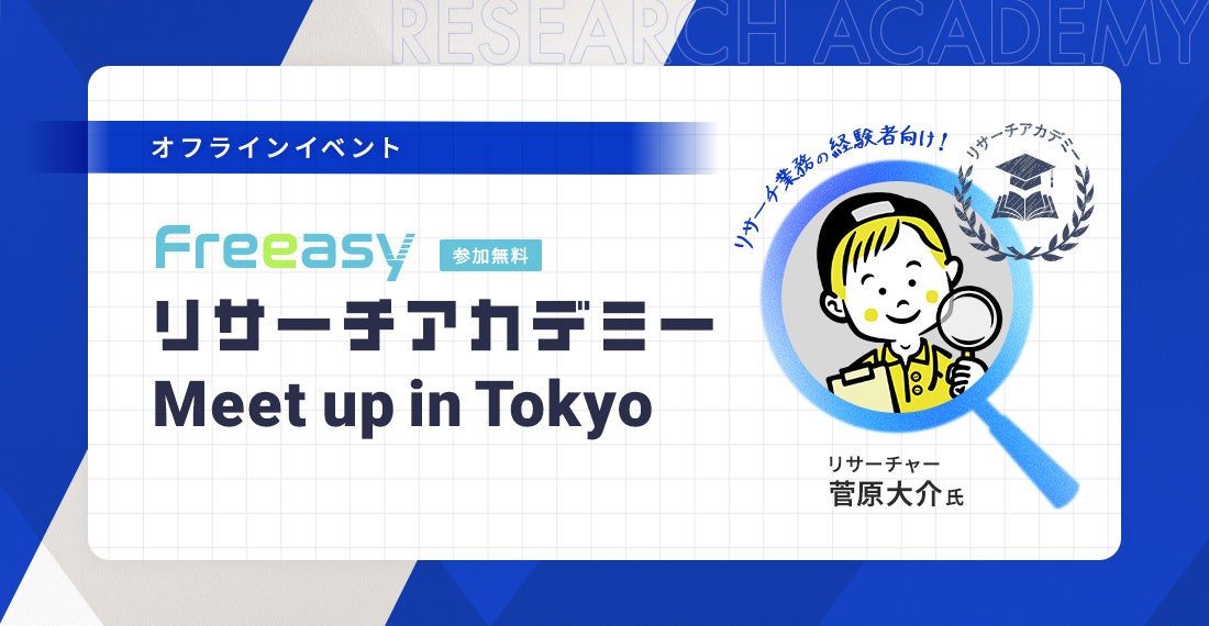Freeasyでは、リサーチに関するノウハウを啓蒙するため、リサーチャーの菅原大介氏を講師に迎え、2024年11月より半年間の予定で、『ブログの発信+オンラインセミナー』の定期開催と『ミートアップ』の不定期開催で構成される「Freeasyリサーチアカデミー」を開催中です。