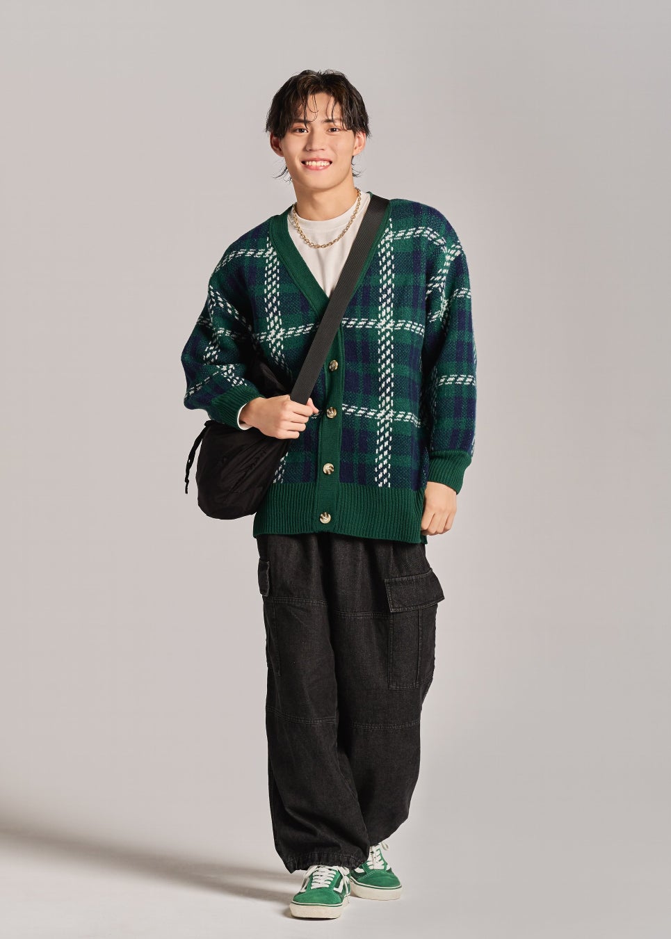 9月のトレンドアイテムであるニットカーディガンを中心に、男女問わず着用できるコーディネートを組んでいただきました。