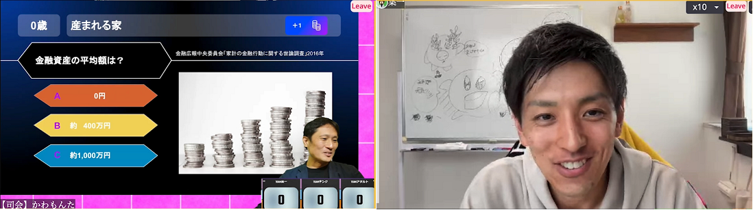 現在の指導要領で、授業の一つになった資産形成。人生100年時代、大人になっても悩みの一つになる「お金」のことは、早めに学んでおいて損はありません。ワオ高校では「経済探究」という科目の中で、「お金」の学習をしています。今回の「人生を豊かにするマネークエスト」では、双六+クイズの形式でゲームを進めながら、人生におけるお金と働き方の問題について、楽しみながら学ぶことができました。
