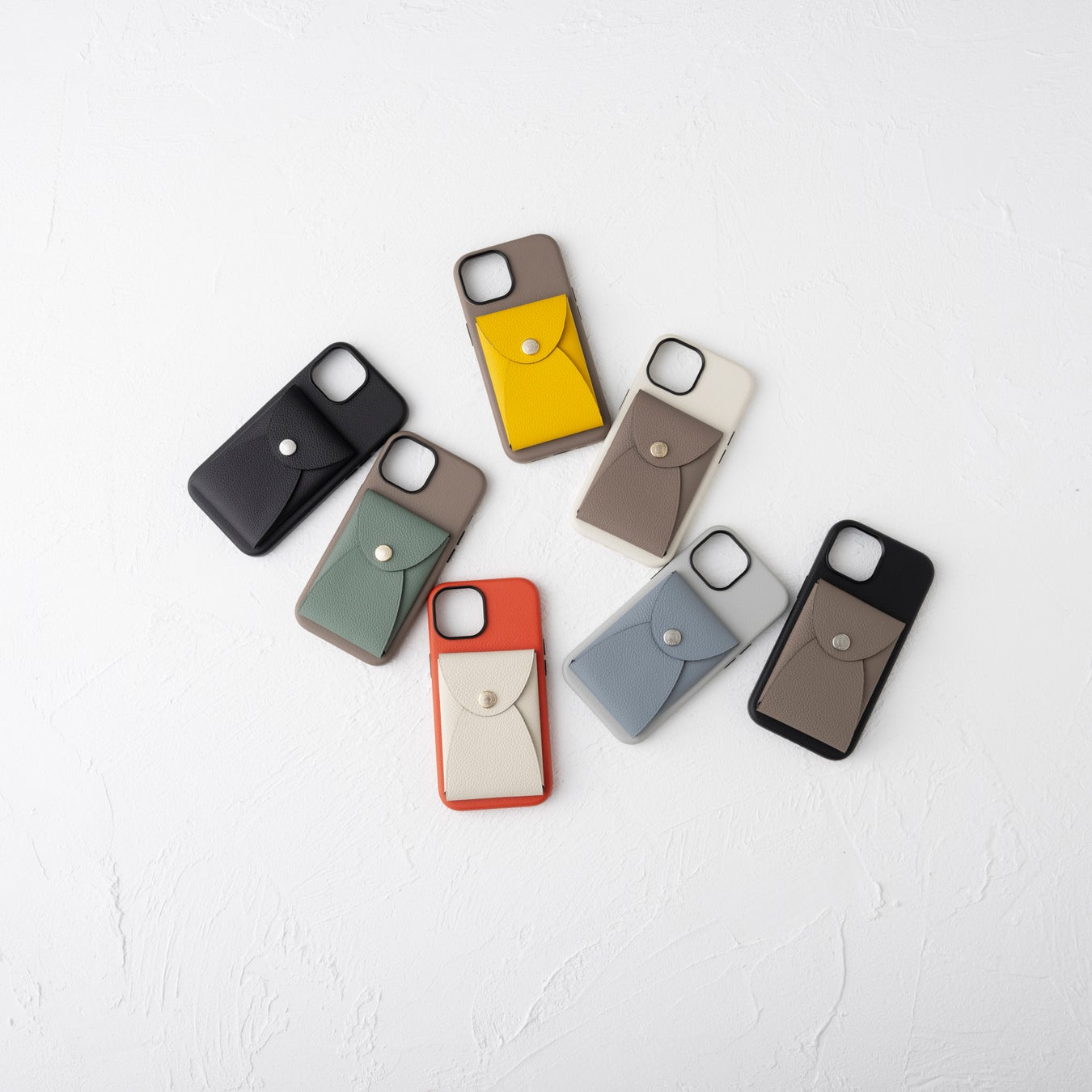 カードケース付きiPhoneケースは、本体部分とエンベロップ部分に異なるカラーを使用。ぱっと目にした時のインパクトが大きく、アイフォンケースに個性を求める方にぴったりのデザインです。(BLK*BLKのみソリッドカラーでの展開)カードケース付きiPhoneケースは、本体部分とエンベロップ部分に異なるカラーを使用。ぱっと目にした時のインパクトが大きく、アイフォンケースに個性を求める方にぴったりのデザインです。(BLK*BLKのみソリッドカラーでの展開となります。)