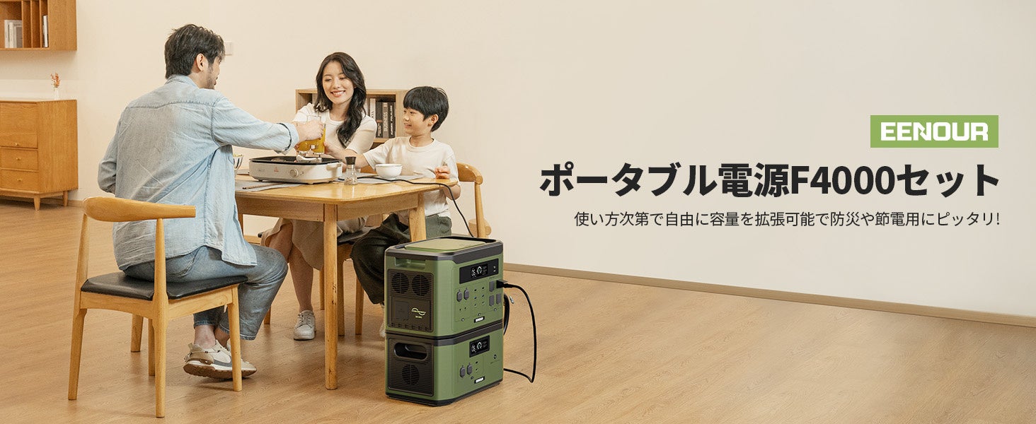EENOUR ポータブル電源 F4000 は、4月12日よりEENOUR各オンライン専門販売店にて、早期特別価格(最大35%OFF)で販売いたします。